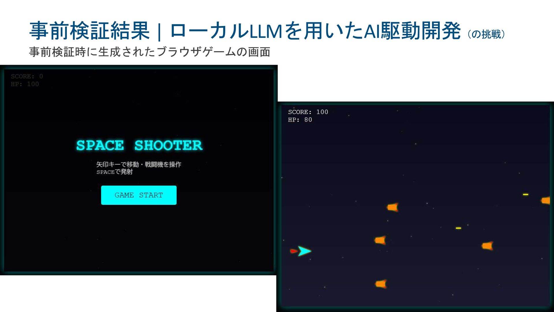 事前検証結果 | ローカルLLMを用いたAI駆動開発(の挑戦) 事前検証時に生成されたブラウザゲームの画面