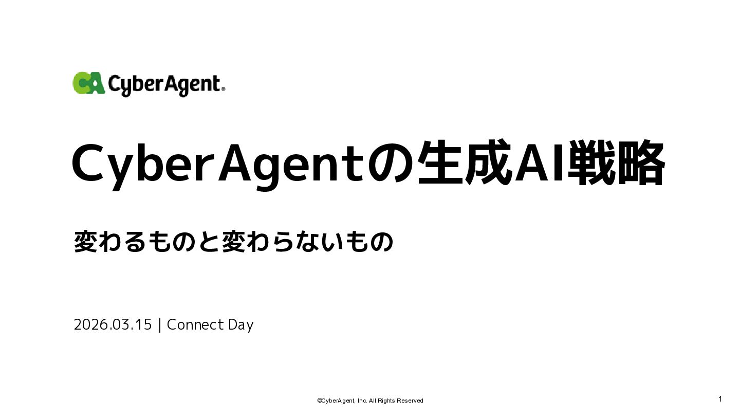 1 ©CyberAgent, Inc. All Rights Reserved CyberAgentの生成AI戦略 2026.03.15|Connect Day 変わるものと変わらないもの