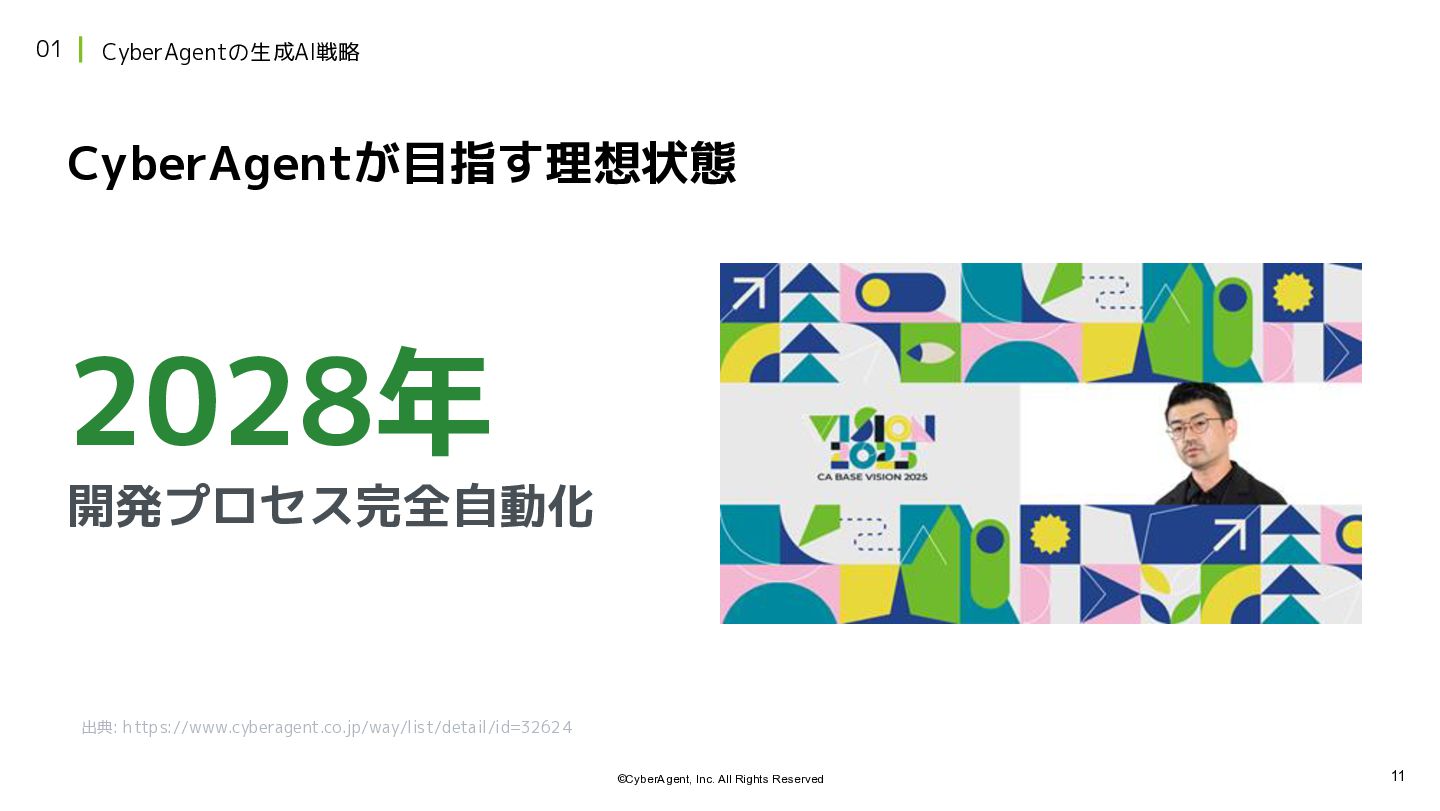 11 ©CyberAgent, Inc. All Rights Reserved 01 CyberAgentの生成AI戦略 2028年 開発プロセス完全自動化