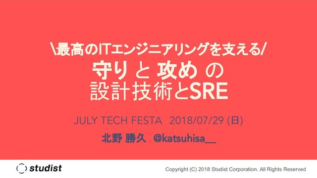 最高のITエンジニアリングとは、ユーザーへの価値提供に最大限集中できる状態を維持し続ける技術だと私は考えます。では、その状態を阻害する要因は一体何であり、どうすれば取り除くことができるのでしょうか。このような具体的な問題と向き合い、近年注目されているSRE の考え方を取り入れ、実装しながら乗り越えてきた体験談についてお話します。(HashiCorp ツールの実装、運用自動化など)また、一歩進んだITエンジニアになるため、実装に留まらない組織的な施策実行の考え方や実際の進め方についてもお伝えします。July Tech Festa 2018 での発表資料です。