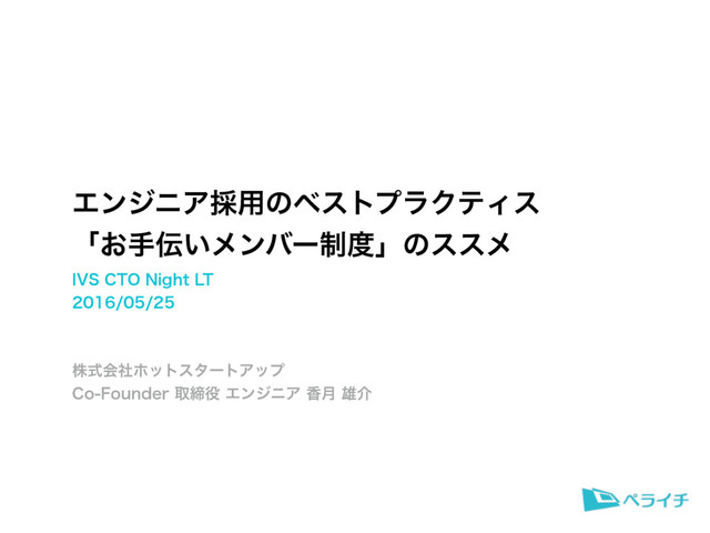 ΤϯδχΞ࠾༻ͷϕετϓϥΫςΟε ʮ͓ख͍ϝϯόʔ੍ʯͷεεϝ *74$50/JHIU-5 גࣜձࣾϗοτελʔτΞοϓ $P'PVOEFSऔకΤϯδχΞ݄߳༤հ