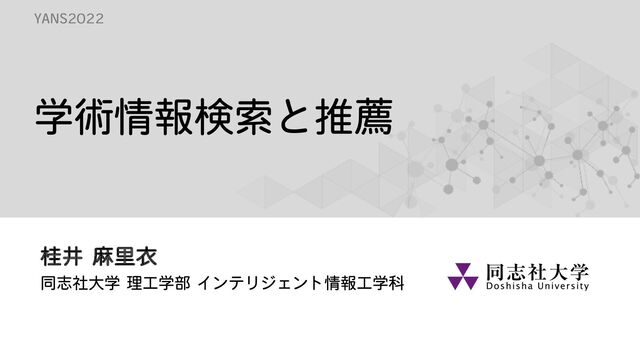【YANS2022 チュートリアル】学術情報検索と推薦