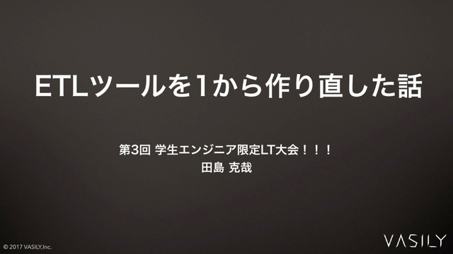 © 2017 VASILY,Inc. 7"4*-:ΠϯλʔϯͰ͖ͬͯͨ͜ͱ ‣ &5-πʔϧͷ࡞Γ͠ ‣ %#Ҡߦ .POHP%#ͷ໓