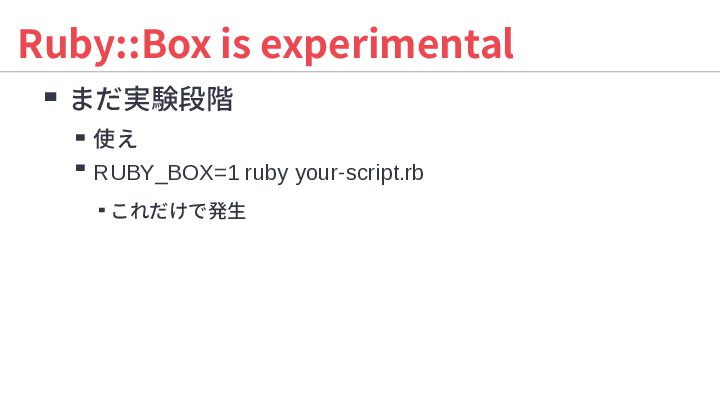 Ruby::Box is experimental, and the behavior may change in the future! See https://docs.ruby-lang.org/en/4.0/Ruby/Box.html for known issues, etc. pid 0 exit 0