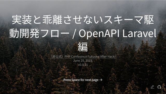 "My First API", version: "0.1")] class OpenApi {} class MyController { #[OA\Get(path: '/api/data.json')] #[OA\Response(response: '200', description: 'The data')] public function getResource() { // ... } } Request <?php use OpenApi\Attributes as OA; use Illuminate\Foundation\Http\FormRequest; #[OA\Schema(schema: 'CreateUserRequest', title: ' ユーザー生成のリクエ class CreateUserRequest extends FromRequest { use BaseRequestTrait; #[OA\Property('username', description: ' ユーザー名', type: 'string', maxLength: 100, pattern: '^[a-zA-Z\d]{4,100}', example: 'scott', nullable: false)] public string $username; #[OA\Property('email', description: ' メールアドレス', type: 'string', maxLength: 320, pattern: '^[a-zA-Z0-9_.+-]+@([a-zA-Z0-9][a-zA-Z0-9-]*[a-zA- example: '