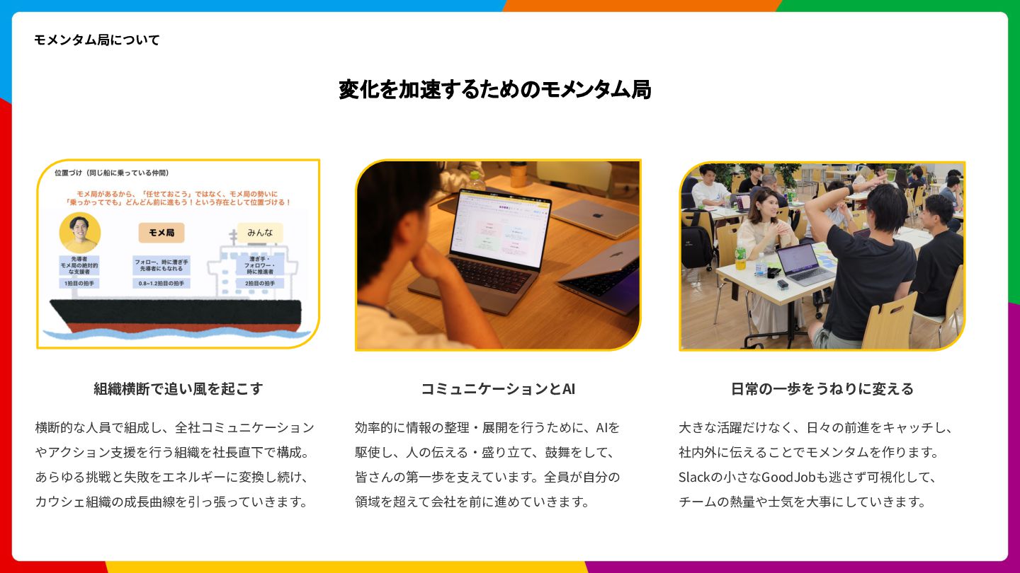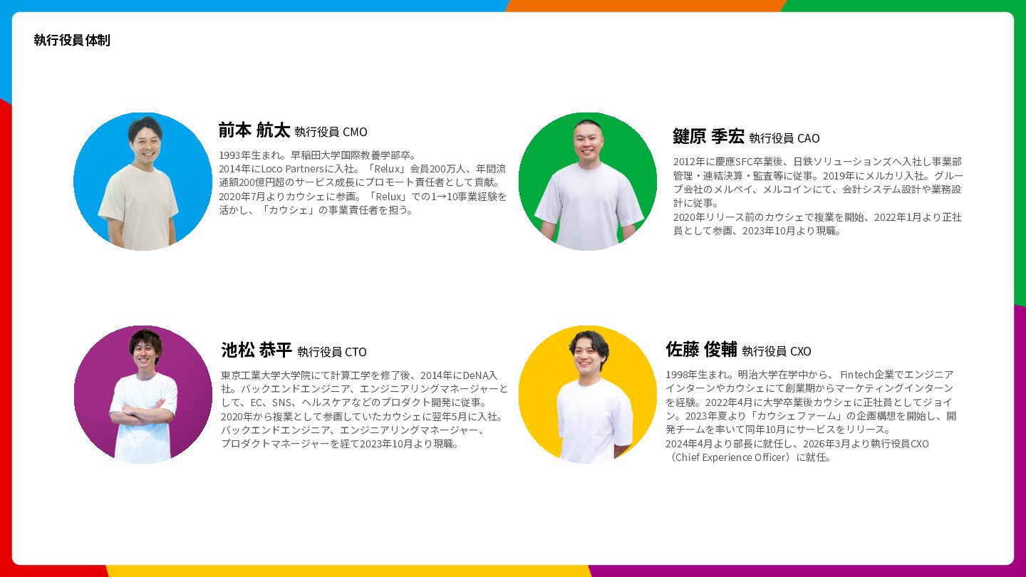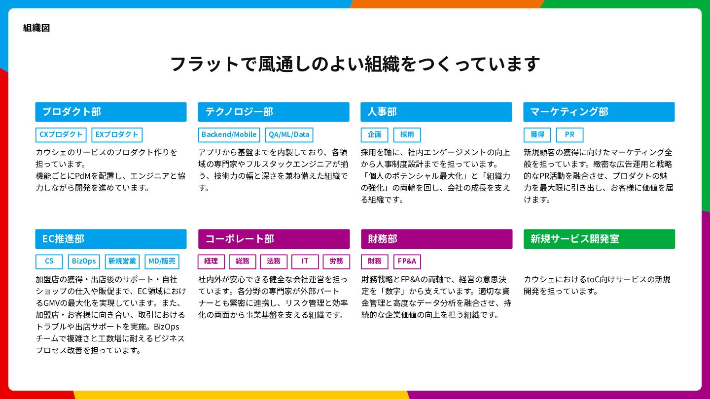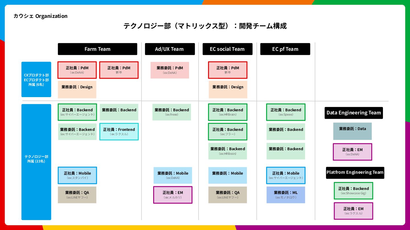 Cloud Scheduler Cloud Spanner Cloud Storage Trace Cloud Load Balancing 開発⾔語 Go, Swift, Kotlin, Typescript アーキテクチャ Clean Architecture, MVVM フレームワーク gRPC, SwiftUI, Jetpack Compose インフラ Google Cloud (Cloud Run, Spanner, Pub/Sub, etc) 構成管理 Terraform データ / ML BigQuery, Dataform, Vertex AI Observability Newrelic, Cloud Monitoring, Cloud Logging, Cloud Trace CI/CD GitHub Actions, Bitrise, Cloud Build 開発ツール GitHub, Slack, Notion デザイン Figma LLM ChatGPT, Claude Code, Claude Code Action, Cline, Codex, Cursor, etc