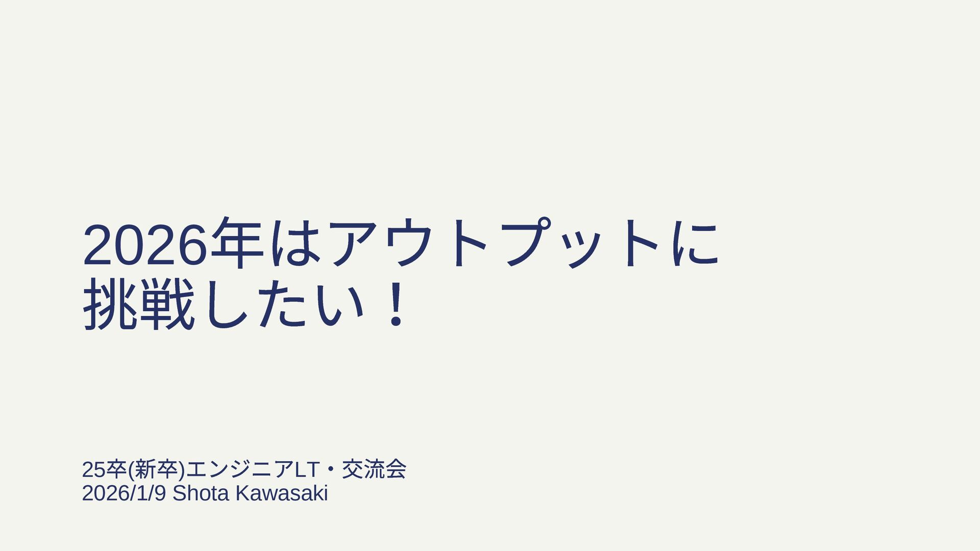 2026 年はアウトプットに 挑戦したい! 25 卒( 新卒) エンジニアLT ・交流会 2026/1/9 Shota
