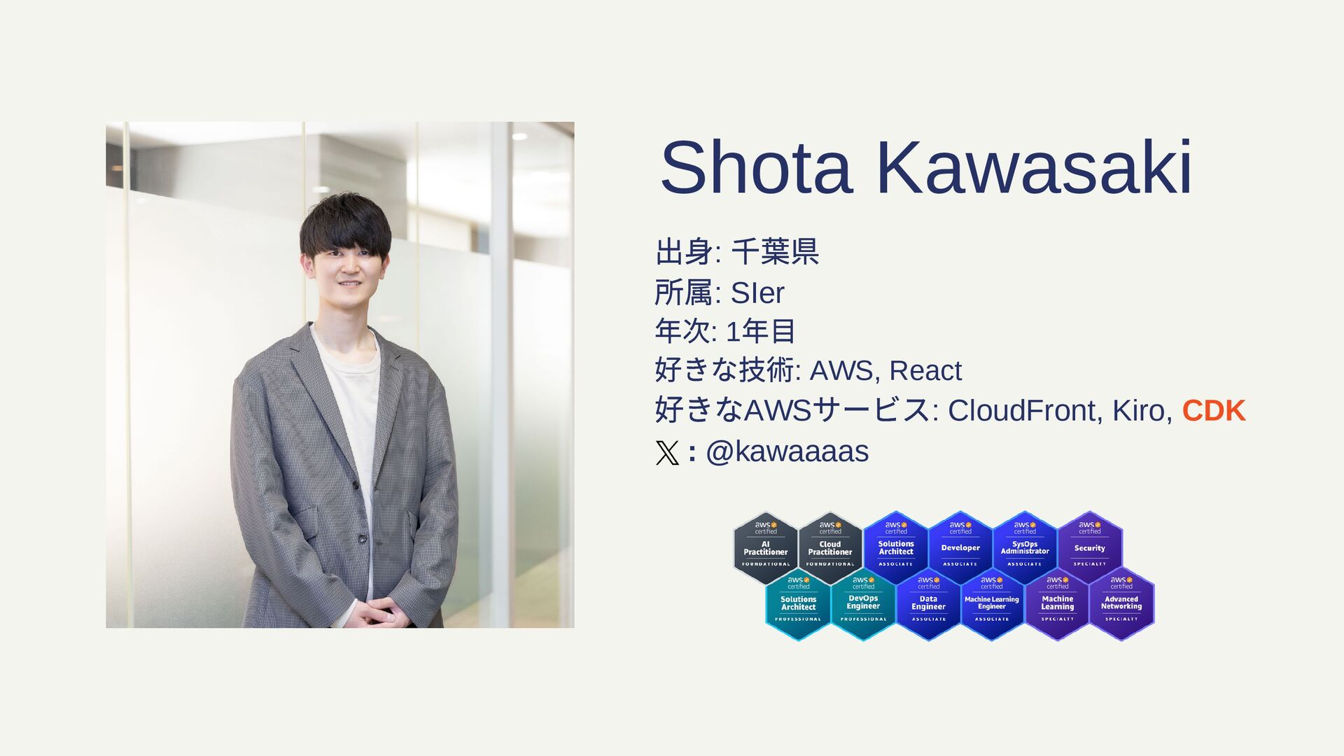 好きなAWS サービス: CloudFront, Kiro, CDK : @kawaaaas Shota Kawasaki