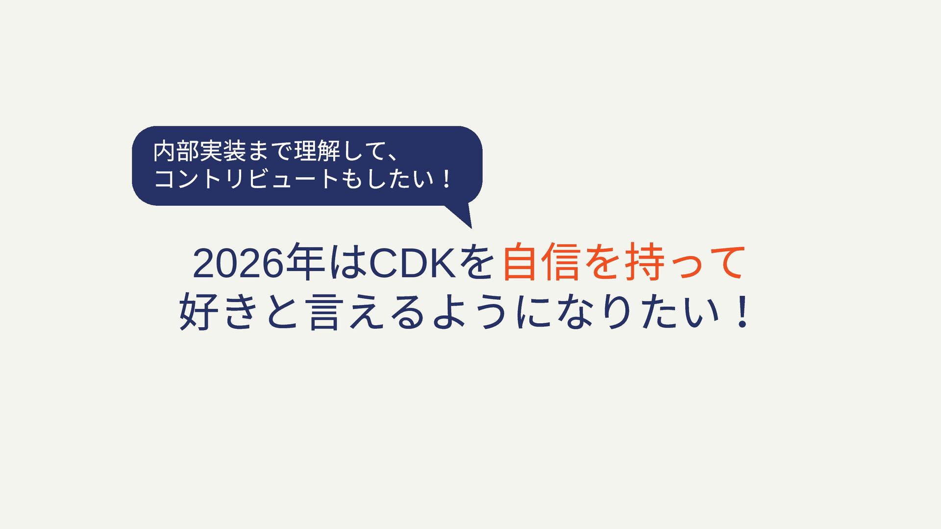 2026 年はCDK を自信を持って 好きと言えるようになりたい! 内部実装まで理解して、 コントリビュートもしたい!