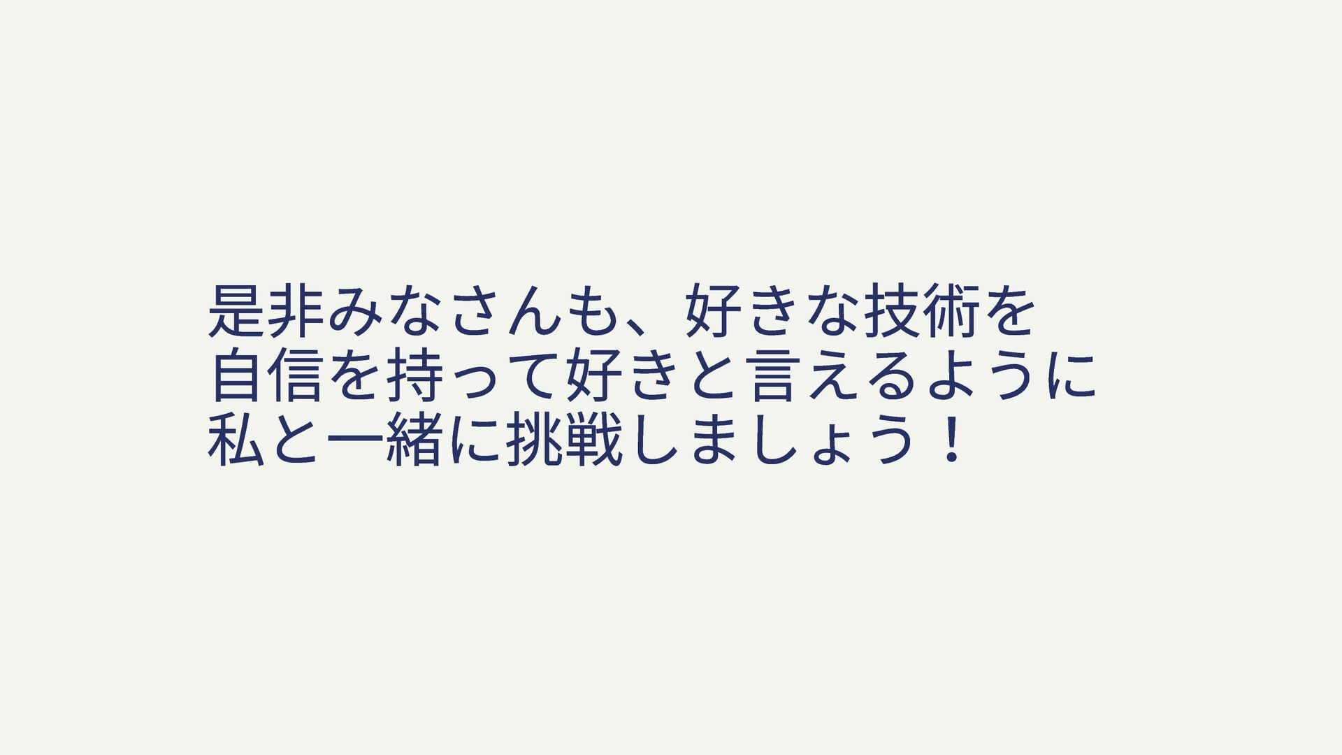 是非みなさんも、好きな技術を 自信を持って好きと言えるように 私と一緒に挑戦しましょう!