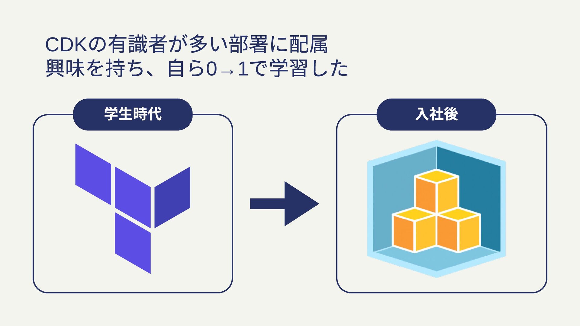 学生時代 入社後 CDK の有識者が多い部署に配属 興味を持ち、自ら0→1 で学習した