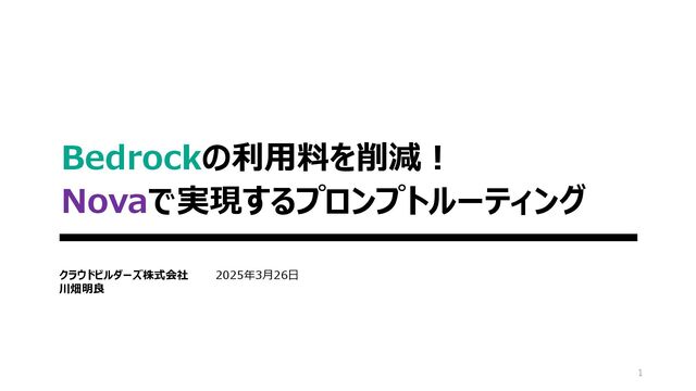 Bedrockの利用料を削減!Novaで実現するプロンプトルーティング.pdf
