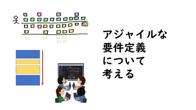 going to be working with. Notice that we’re not using words such as schema or classes here. We’re also not talking about databases, tables, keys, and the like. We’re talking about data. At this stage in the development, we don’t know if we’ll even be using a database. データ 最後に、これから扱うデータについて考える必要があり ます。ここでは、スキーマやクラスといった言葉は使っ ていないことに注意してください。また、データベース、 テーブル、キーなどの話もしません。データについて話 しているのです。この開発段階では、データベースを使 うかどうかさえわかりません。