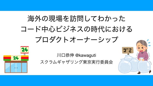 ւ֎ͷݱΛ๚ͯ͠Θ͔ͬͨ ίʔυத৺Ϗδωεͷ࣌ʹ͓͚Δ ϓϩμΫτΦʔφʔγοϓ ޱګ৳ @kawaguti εΫϥϜΪϟβϦϯά౦ژ࣮ߦҕһձ
