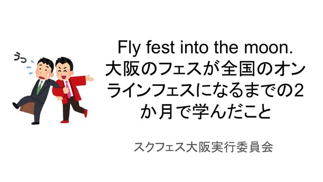 Fly fest into the moon. 大阪のフェスが全国のオン ラインフェスになるまでの2 か月で学んだこと スクフェス大阪実行委員会 うっ