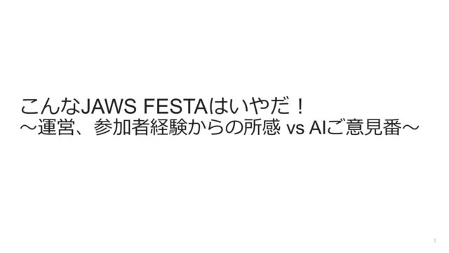 こんなJAWS FESTAはいやだ︕ 〜運営、参加者経験からの所感 vs AIご意⾒番〜 1