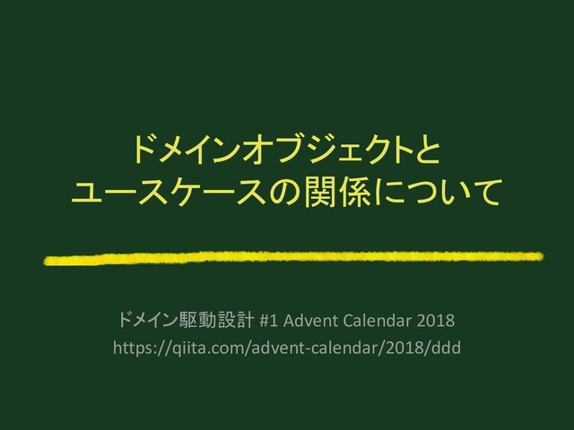 ドメインオブジェクトと ユースケースの関係について ドメイン駆動設計 #1 Advent Calendar 2018 https://qiita.com/advent-calendar/2018/ddd