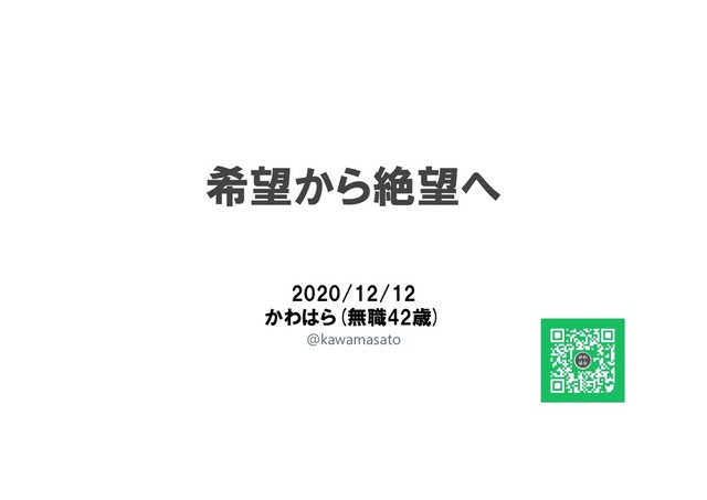 希望から絶望へ 2020/12/12 かわはら(無職42歳) @kawamasato