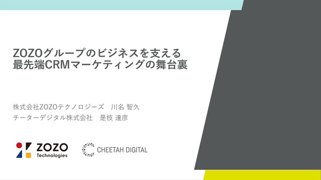 ZOZOグループのビジネスを⽀える 最先端CRMマーケティングの舞台裏 株式会社ZOZOテクノロジーズ 川名 智久 チーターデジタル株式会社 是枝 達彦