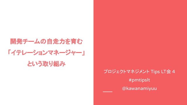 開発チームの自走力を育む 「イテレーションマネージャー」 という取り組み プロジェクトマネジメント Tips LT会 4 #pmtipslt @kawanamiyuu