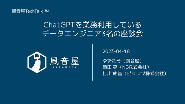 風音屋TechTalk#4 ChatGPTを業務利用しているデータエンジニア3名の座談会 #kazaneya / 20230426