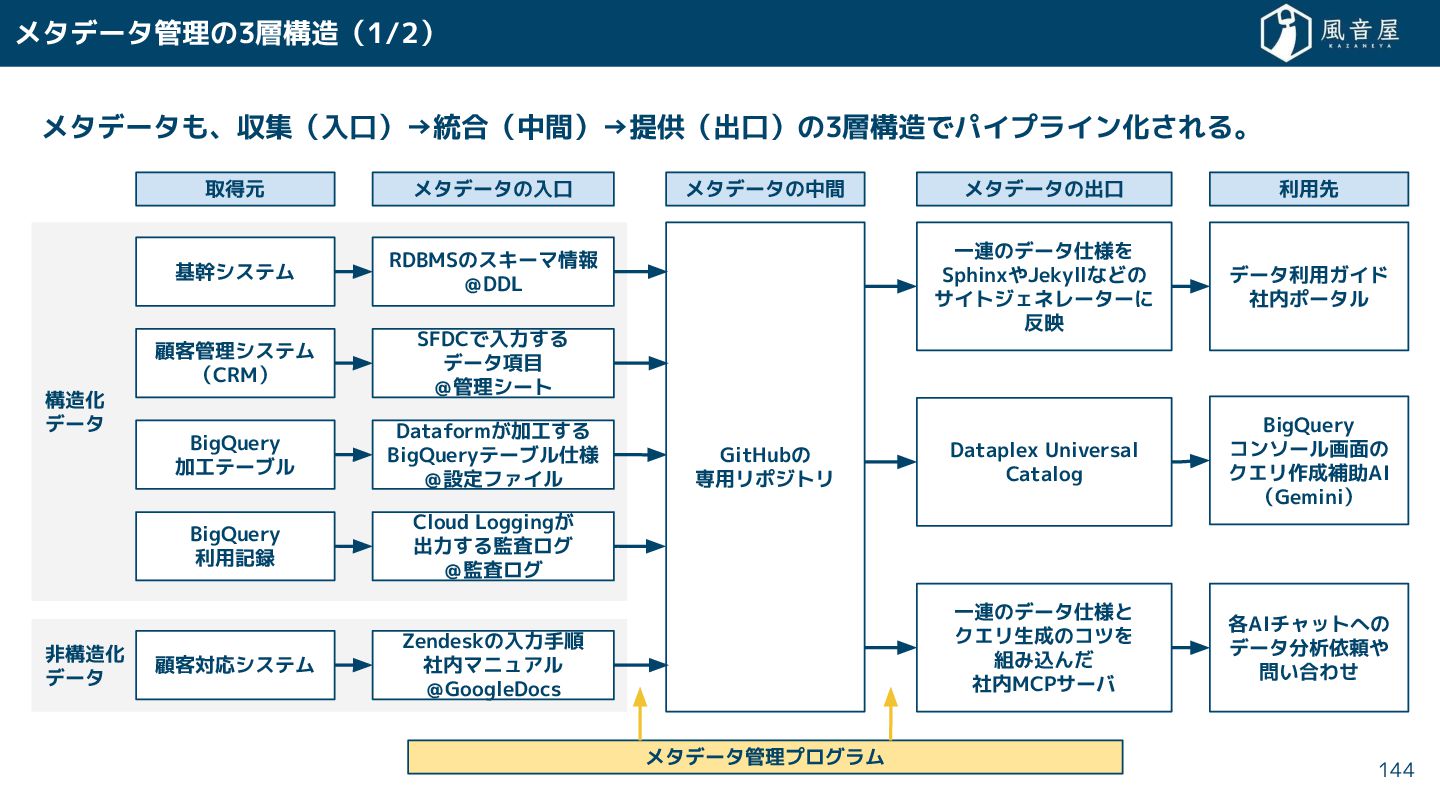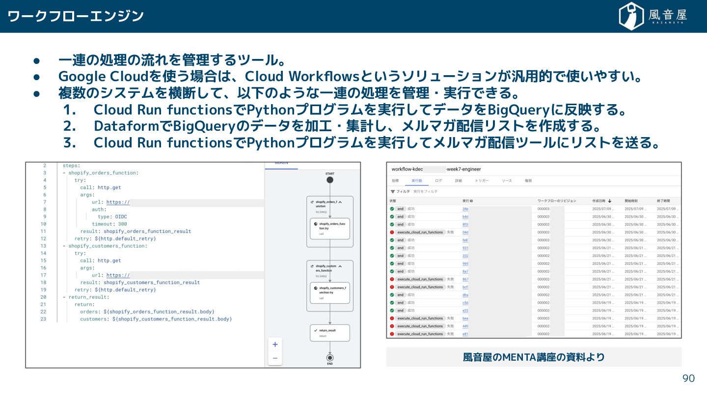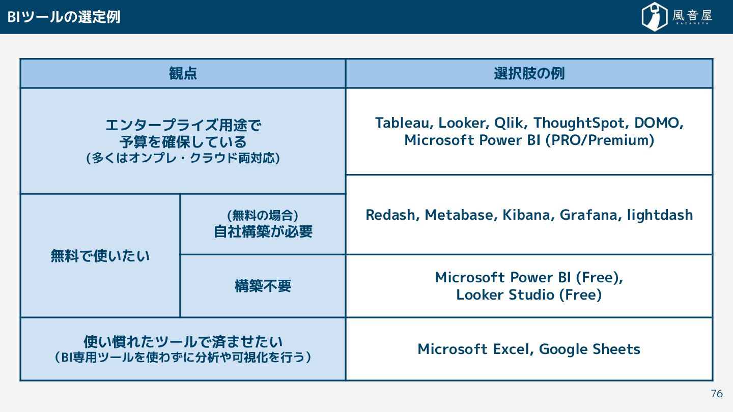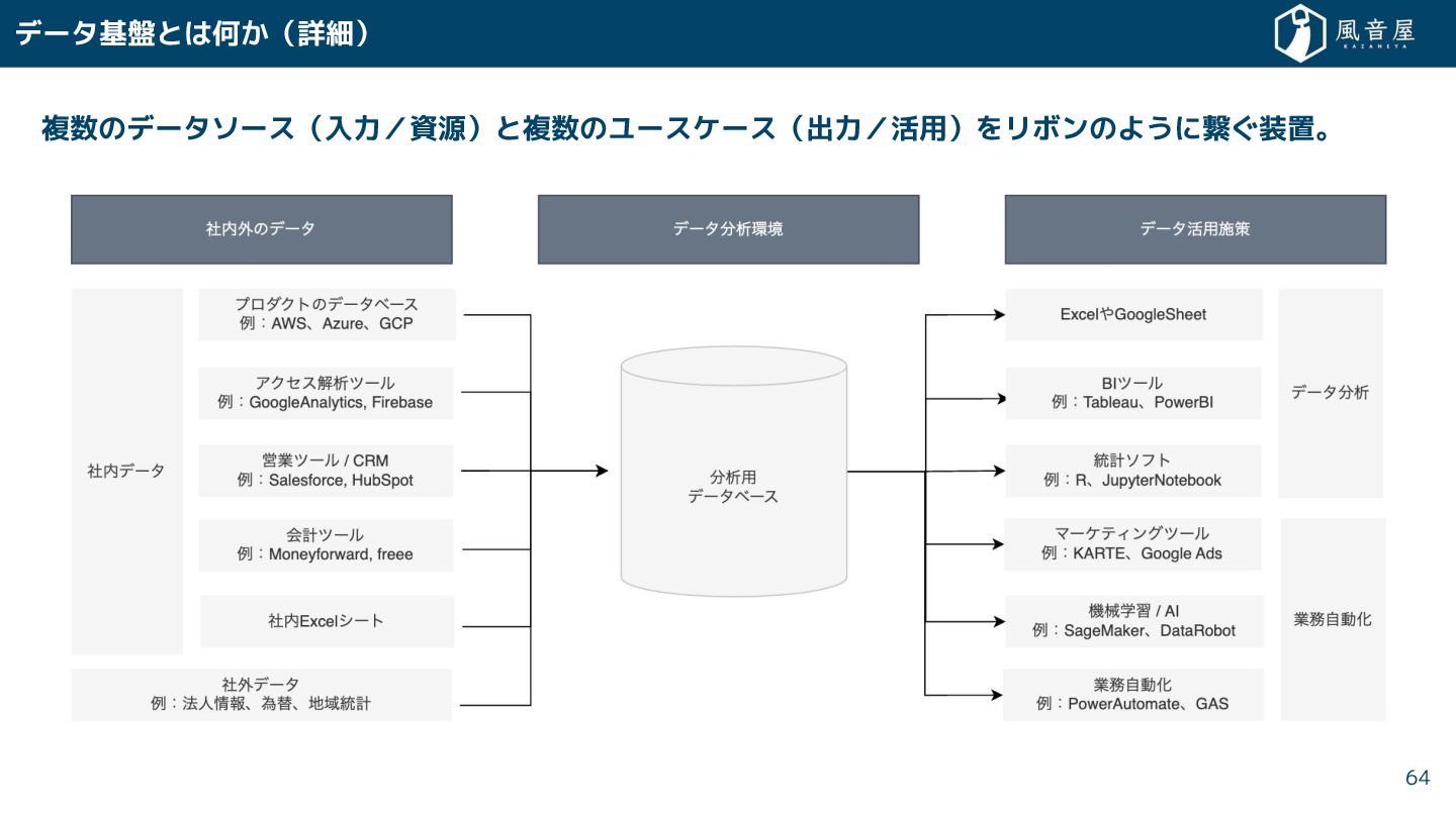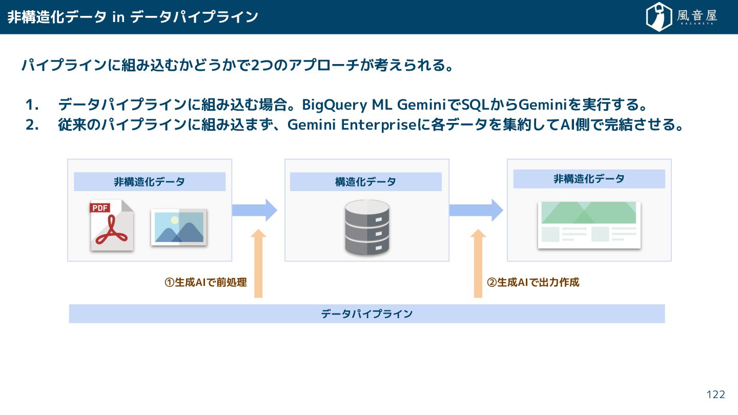 Embulk 画面 HULFT, DataSpider, Alteryx, CDataSync, ASTERIA WARP, Talend, Airbyte クラウド ベンダー コード AWS Glue, Databricks Job 画面 HULFT SQUARE, Informatica, Boomi, Fivetran, Stitch, TROCCO, Reckoner, Azure Data Factory ストリーミング (メッセージキュー含む) クラウドベンダー Amazon Kinesis, AWS SNS + SQS + Lambda, Cloud Pub/Sub, Azure Stream Analytics オンプレ構築可能 Fluentd, Apache Kafka, Logstash, Apache Storm 両対応 クラウドベンダー Cloud Dataflow オンプレ構築可能 (分散処理FW) Apache Spark, Apache beam