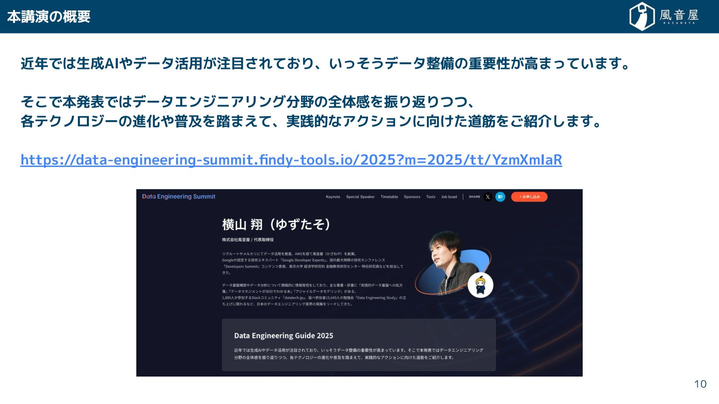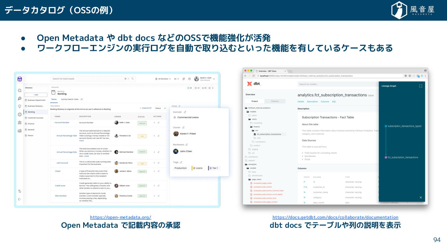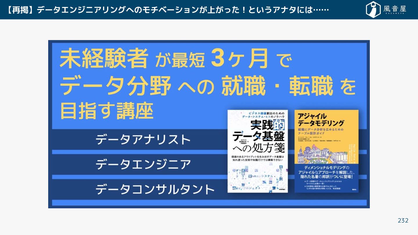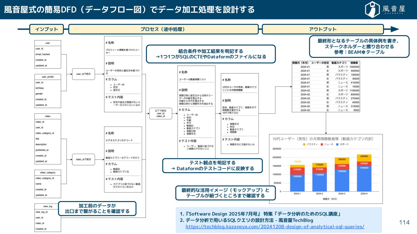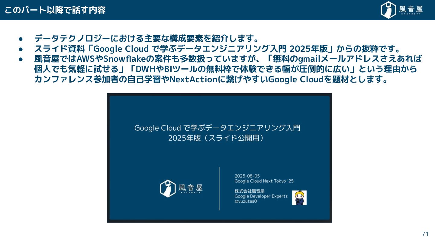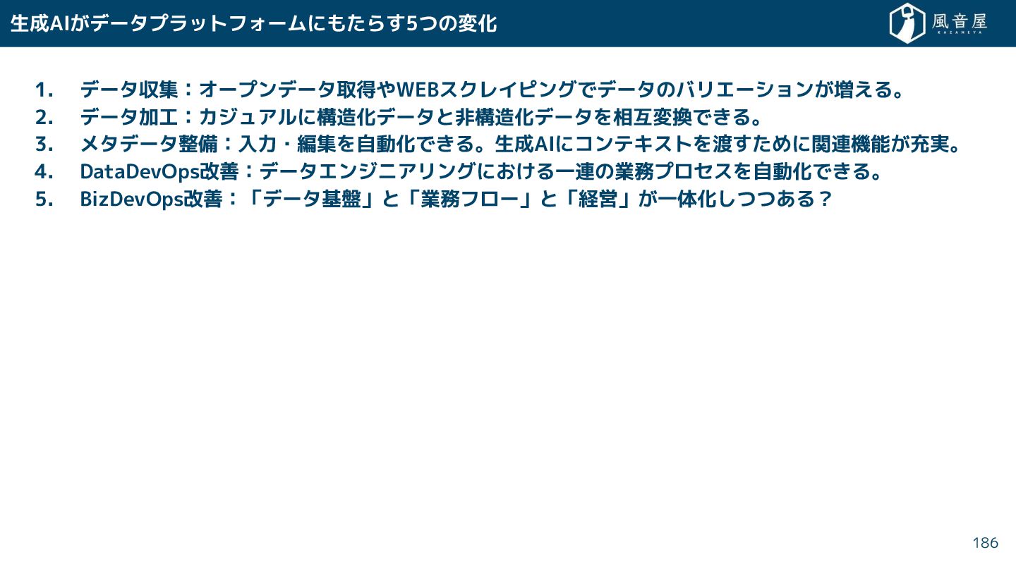 Embulk 画面 HULFT, DataSpider, Alteryx, CDataSync, ASTERIA WARP, Talend, Airbyte クラウド ベンダー コード AWS Glue, Databricks Job 画面 HULFT SQUARE, Informatica, Boomi, Fivetran, Stitch, TROCCO, Reckoner, Azure Data Factory ストリーミング (メッセージキュー含む) クラウドベンダー Amazon Kinesis, AWS SNS + SQS + Lambda, Cloud Pub/Sub, Azure Stream Analytics オンプレ構築可能 Fluentd, Apache Kafka, Logstash, Apache Storm 両対応 クラウドベンダー Cloud Dataflow オンプレ構築可能 (分散処理FW) Apache Spark, Apache beam