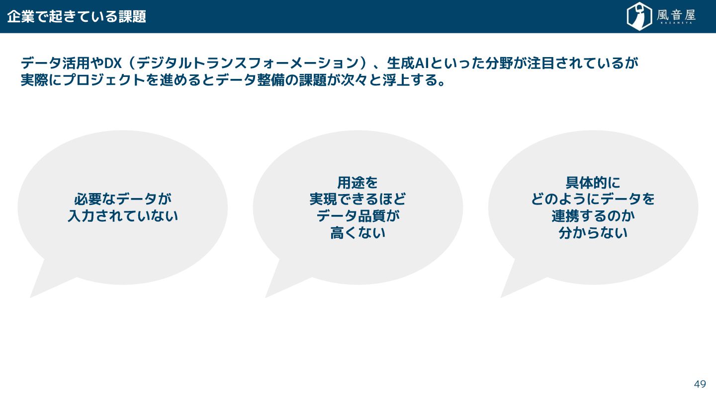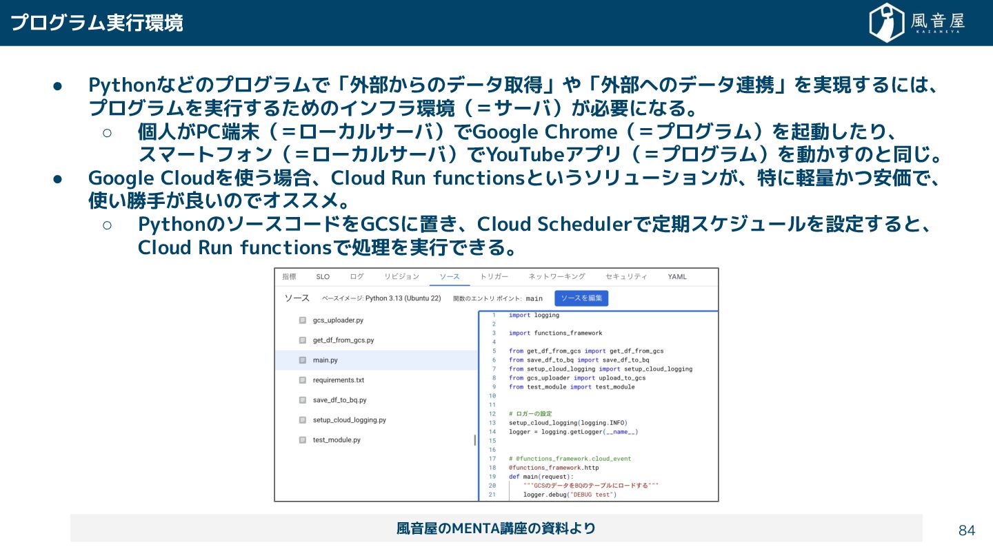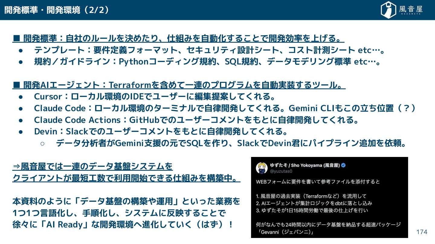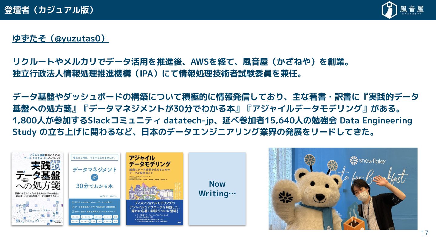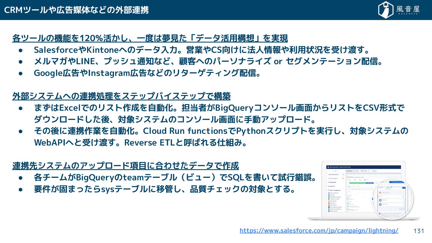 Embulk 画面 HULFT, DataSpider, Alteryx, CDataSync, ASTERIA WARP, Talend, Airbyte クラウド ベンダー コード AWS Glue, Databricks Job 画面 HULFT SQUARE, Informatica, Boomi, Fivetran, Stitch, TROCCO, Reckoner, Azure Data Factory ストリーミング (メッセージキュー含む) クラウドベンダー Amazon Kinesis, AWS SNS + SQS + Lambda, Cloud Pub/Sub, Azure Stream Analytics オンプレ構築可能 Fluentd, Apache Kafka, Logstash, Apache Storm 両対応 クラウドベンダー Cloud Dataflow オンプレ構築可能 (分散処理FW) Apache Spark, Apache beam