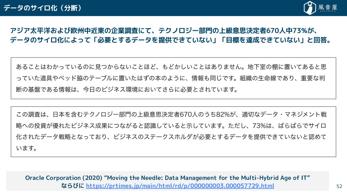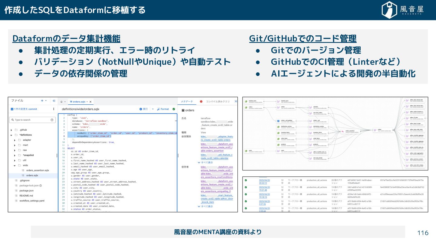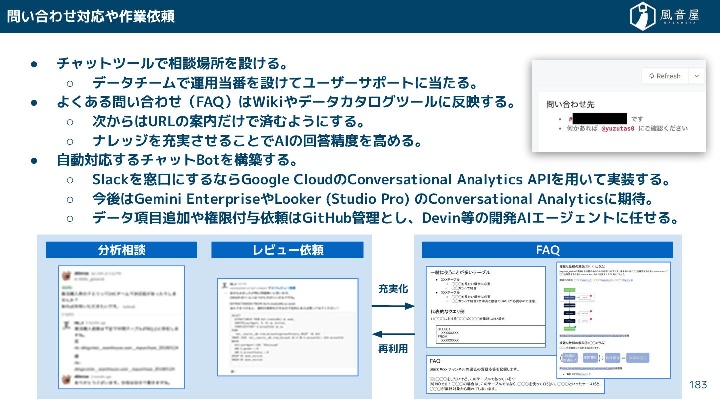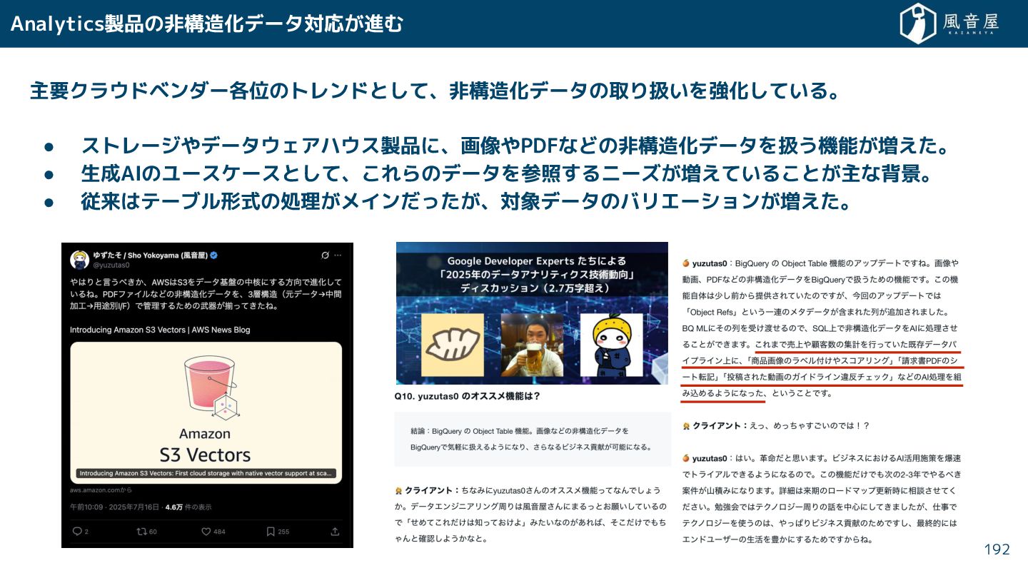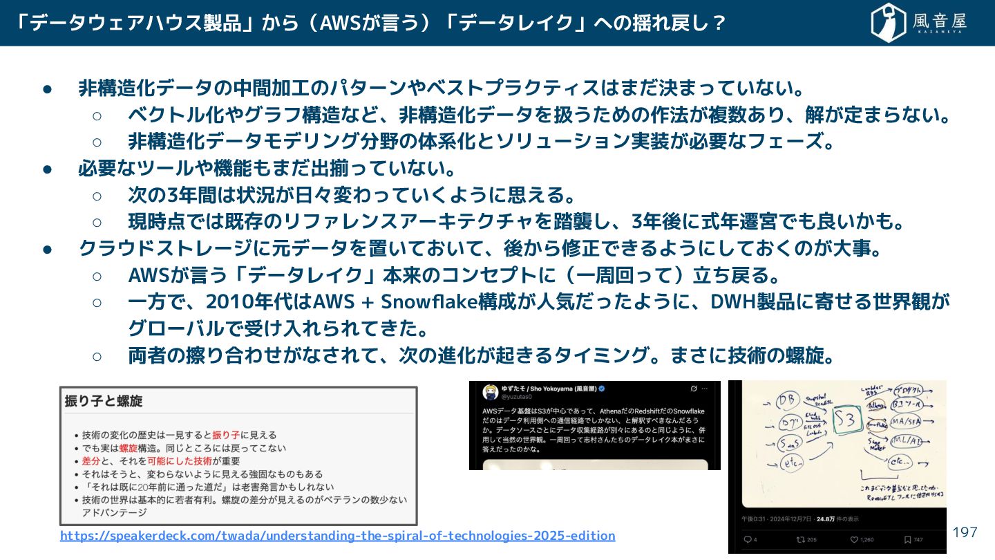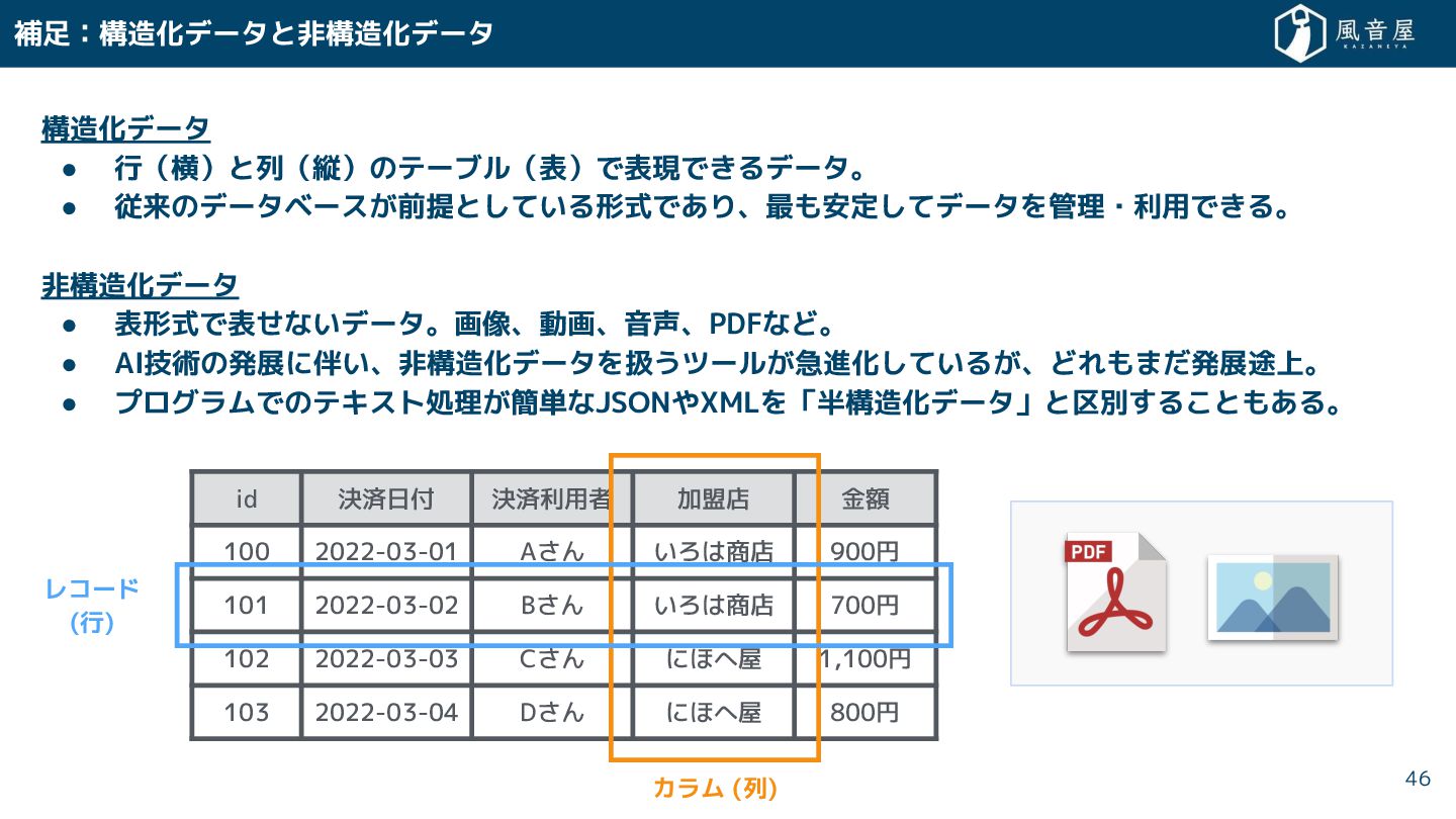 Embulk 画面 HULFT, DataSpider, Alteryx, CDataSync, ASTERIA WARP, Talend, Airbyte クラウド ベンダー コード AWS Glue, Databricks Job 画面 HULFT SQUARE, Informatica, Boomi, Fivetran, Stitch, TROCCO, Reckoner, Azure Data Factory ストリーミング (メッセージキュー含む) クラウドベンダー Amazon Kinesis, AWS SNS + SQS + Lambda, Cloud Pub/Sub, Azure Stream Analytics オンプレ構築可能 Fluentd, Apache Kafka, Logstash, Apache Storm 両対応 クラウドベンダー Cloud Dataflow オンプレ構築可能 (分散処理FW) Apache Spark, Apache beam