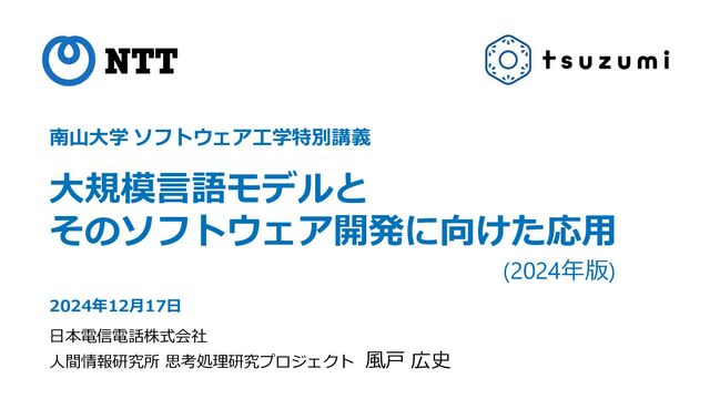 Networks and Deep Learning”, http://neuralnetworksanddeeplearning.com/ http://nnadl-ja.github.io/nnadl_site_ja/index.html (日本語版) • 情報処理推進機構, “自然言語処理技術の進化:AIによる「ことば」の処理から汎用AIへ 最新の動向について”, https://www.ipa.go.jp/digital/chousa/trend/ai.html • 西田京介, 西田光甫, 風戸広史, “大規模言語モデル入門”, ソフトウェア工学シンポジウム 2023 チュートリアル, https://ses.sigse.jp/2024/wp-content/uploads/2024/08/SES2024_SES2024_チュートリアル.pdf • 太田真人,“ICLR2024 LLMエージェントの研究動向”, https://speakerdeck.com/masatoto/iclr2024-llmezientonoyan-jiu-dong-xiang • Wang et al., “Agents in Software Engineering: Survey, Landscape, and Vision”, https://arxiv.org/abs/2409.09030 • Xi et al., “The Rise and Potential of Large Language Model Based Agents: A Survey”, https://arxiv.org/abs/2309.07864 • Wang et al., “A Survey on Large Language Model based Autonomous Agents”, https://arxiv.org/abs/2308.11432