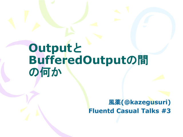 Outputと BufferedOutputの間 の何か 風薬(@kazegusuri) Fluentd Casual Talks #3
