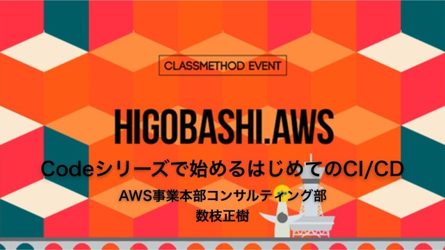 HIGOBASHI.AWS 第11回(https://classmethod.connpass.com/event/145477/) で登壇した際の資料です。詳細はブログにまとめていますのでそちらをご覧ください。 https://dev.classmethod.jp/cloud/aws/cicd-with-code-series-at-higobashi-aws/
