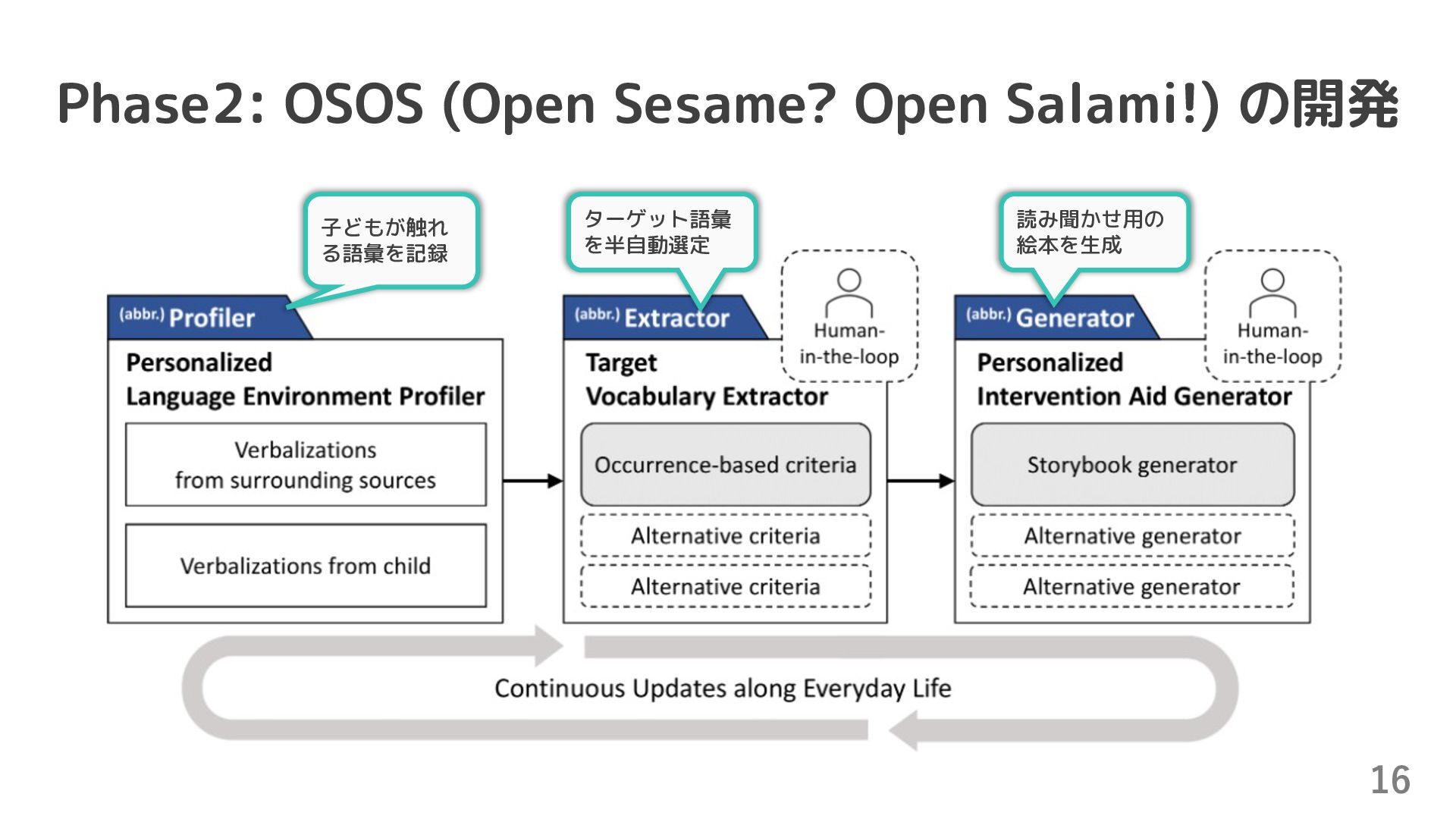 8. 16 Phase2: OSOS (Open Sesame? Open Salami!) の開発 子どもが触れ る語彙を記録