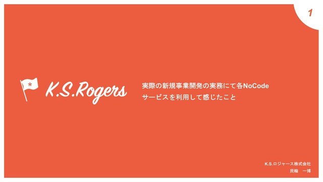 1 実際の新規事業開発の実務にて各NoCode サービスを利用して感じたこと K.S.ロジャース株式会社 民輪 一博