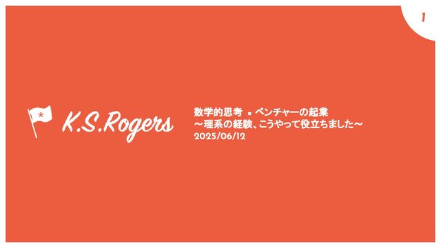 1 数学的思考 × ベンチャーの起業 〜理系の経験、こうやって役立ちました〜 2025/06/12