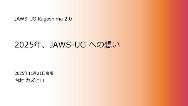 2025年、JAWS-UG への想い JAWS-UG Kagoshima 2.0 内村 カズヒロ 2025年11月21日金曜