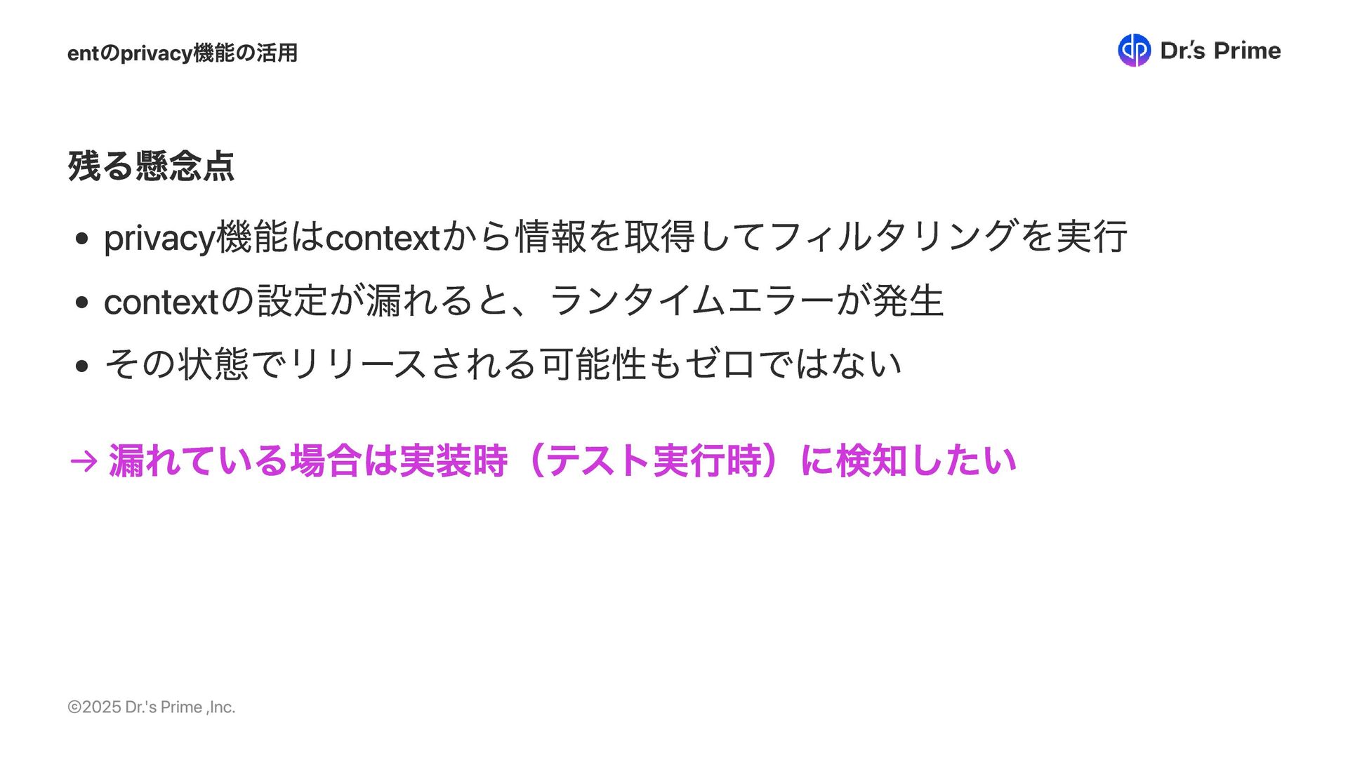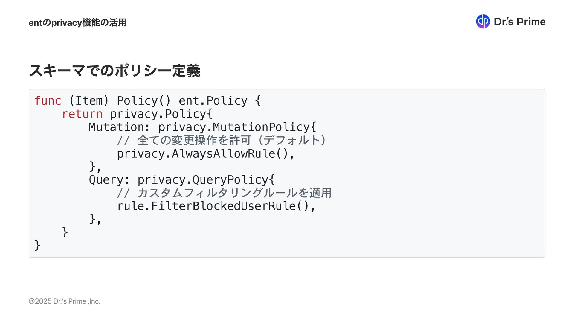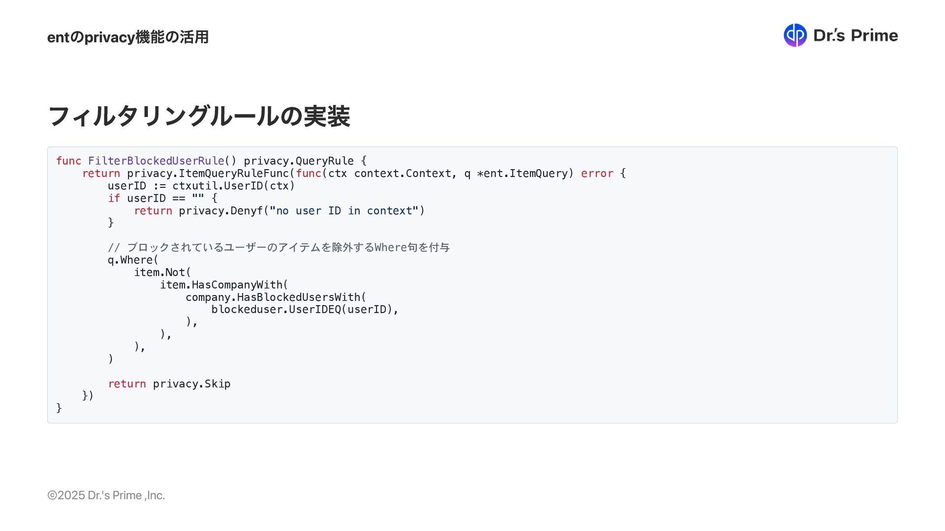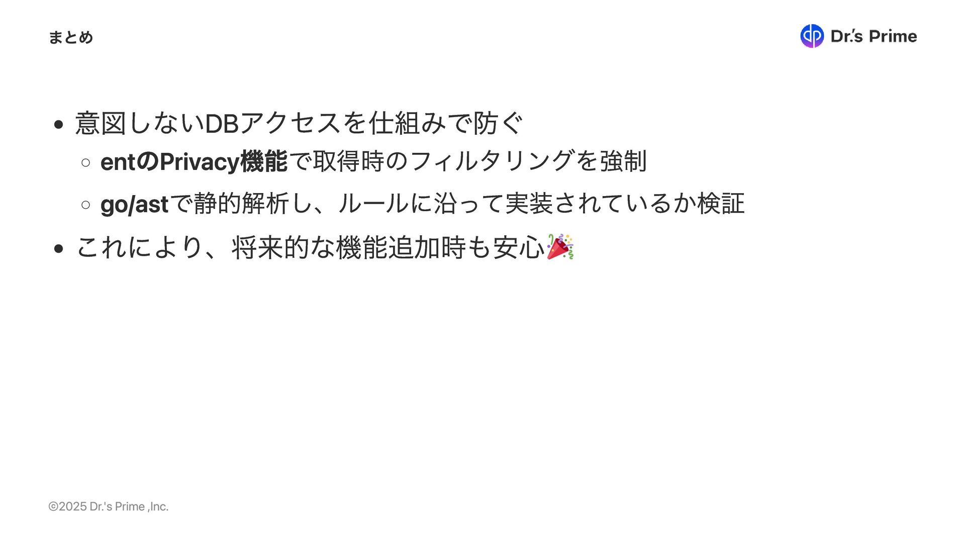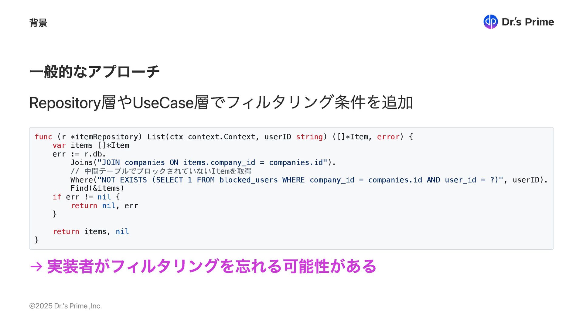 "itemRepository" targetSourceFileName = "item_repository.go" targetMethodName = "setContext" ) // AST解析で各メソッドがsetContextを呼んでいるかチェック gotCallMap, err := CheckMethodCallsInStruct(targetSourceFileName, targetStructName, targetMethodName) if err != nil { t.Fatal(err) } wantCallMap := map[string]bool{ "List": true, "GetByID": true, } if !reflect.DeepEqual(wantCallMap, gotCallMap) { t.Errorf("Method list mismatch.\nWanted: %v\nGot: %v", wantCallMap, gotCallMap) } } ©2025 Dr.'s Prime ,Inc.