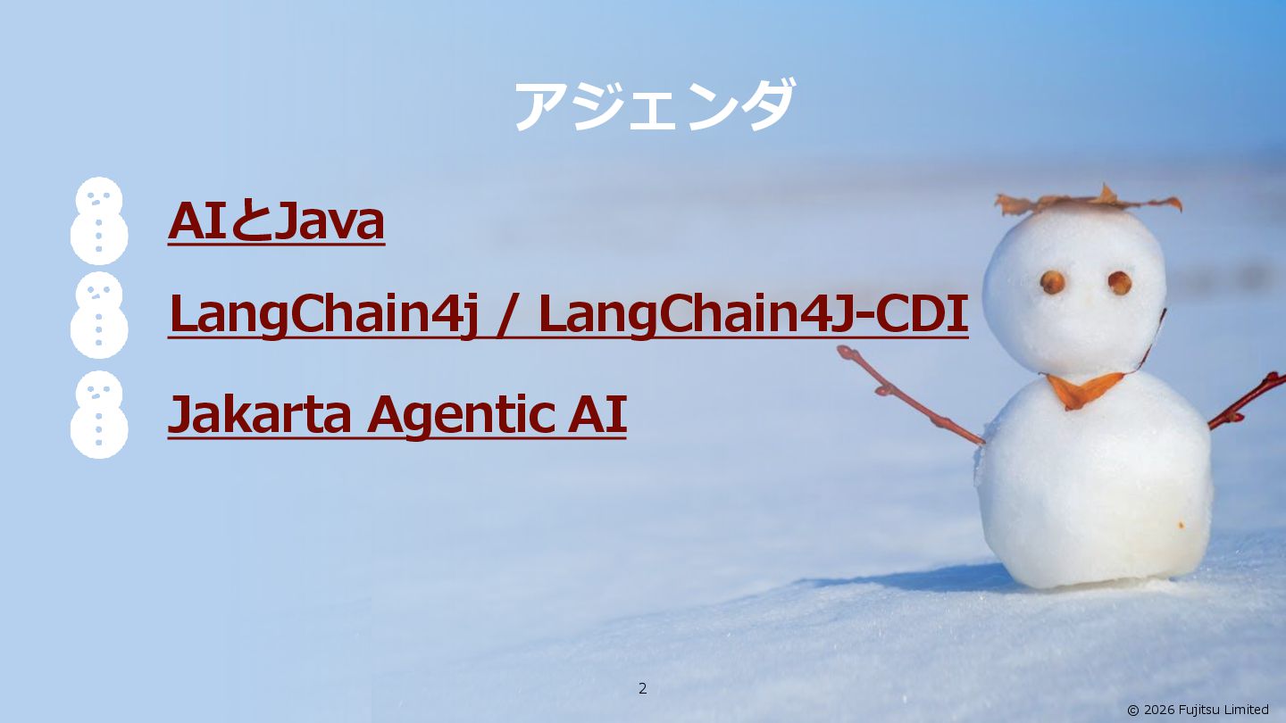 1. © 2026 Fujitsu Limited © 2026 Fujitsu Limited アジェンダ AIとJava