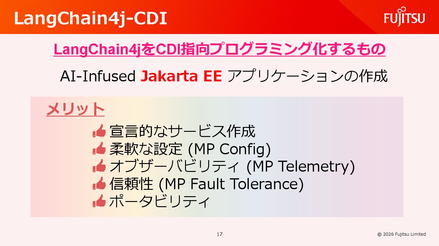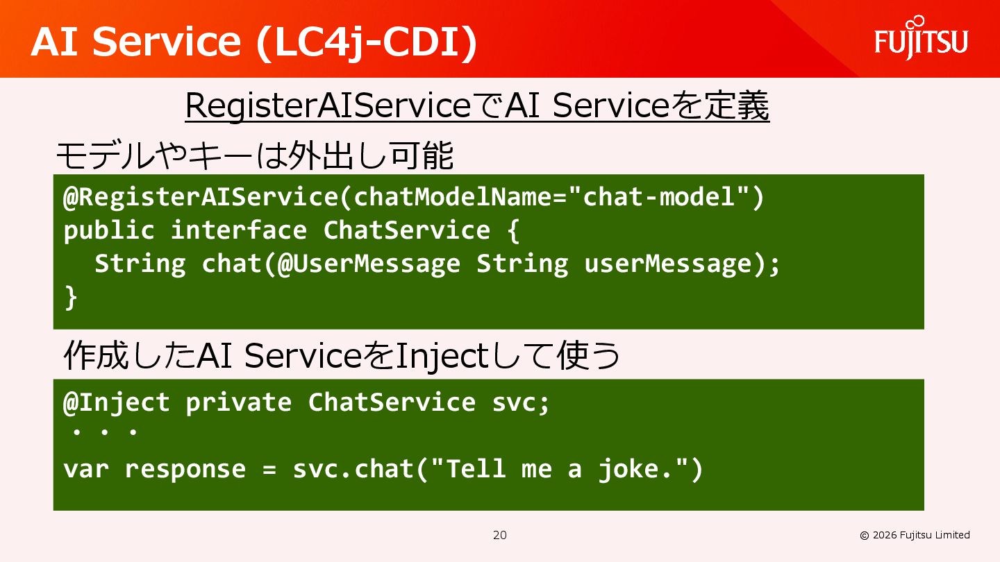 14. © 2026 Fujitsu Limited © 2026 Fujitsu Limited LangChain4j-CDI LangChain4jをCDI指向プログラミング化するもの