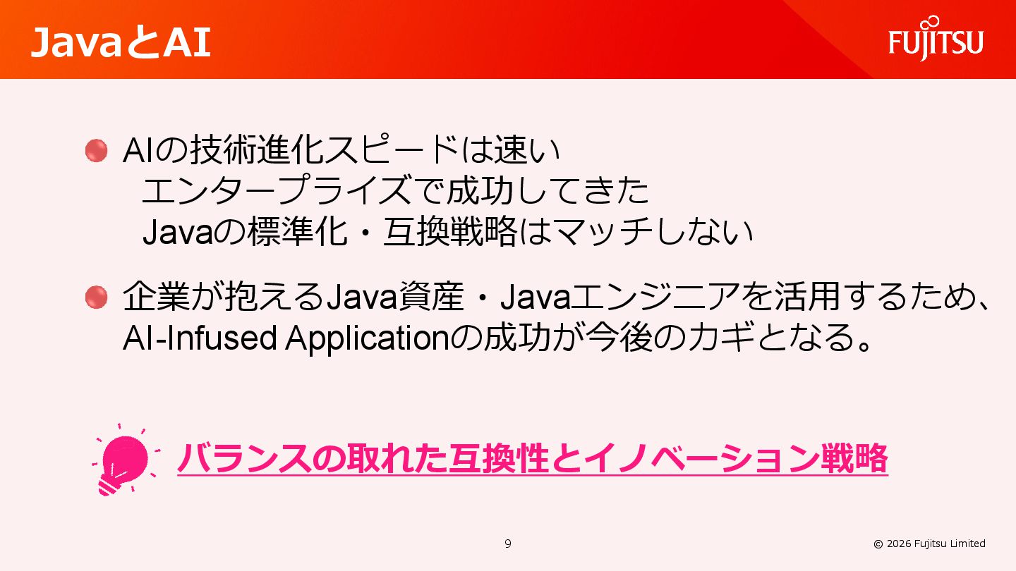 9. © 2026 Fujitsu Limited © 2026 Fujitsu Limited バランスの取れた互換性とイノベーション戦略 AIシステムを構築サポートするフレームワークの提供