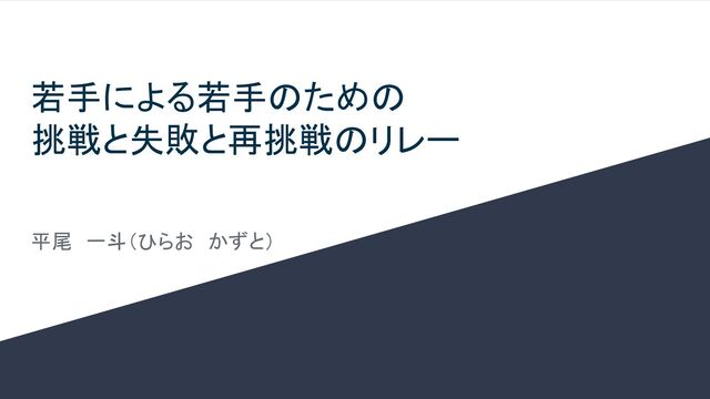若手による若手のための 挑戦と失敗と再挑戦のリレー 平尾 一斗(ひらお かずと)
