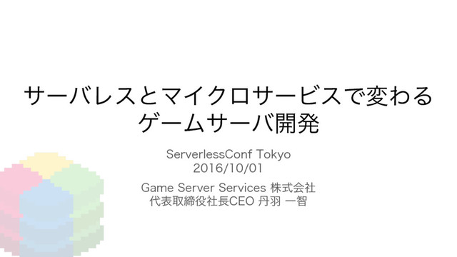 αʔόϨεͱϚΠΫϩαʔϏεͰมΘΔ ήʔϜαʔό։ൃ 4FSWFSMFTT$POG5PLZP (BNF4FSWFS4FSWJDFTגࣜձࣾ දऔకࣾ$&0୮Ӌ Ұஐ