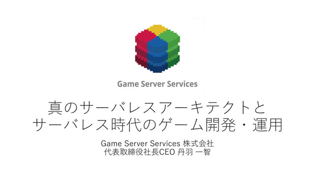 真のサーバレスアーキテクトと サーバレス時代のゲーム開発・運⽤ Game Server Services 株式会社 代表取締役社⻑CEO 丹⽻ ⼀智