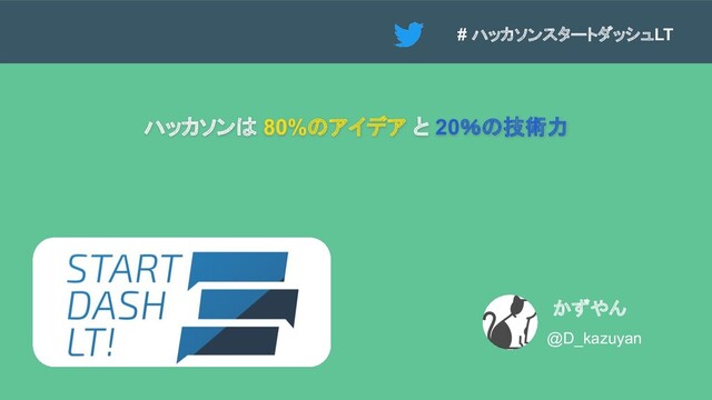 # ハッカソンスタートダッシュLT ハッカソンは 80%のアイデア と 20%の技術力 かずやん @D_kazuyan
