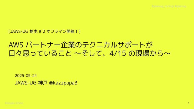 2025年5月24日に開催された「JAWS-UG 栃木 # 2 オフライン開催!」( https://jawsug-tochigi.connpass.com/event/349541/ )での登壇資料です。