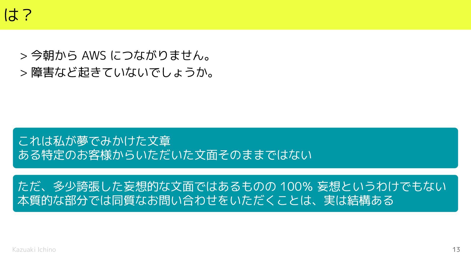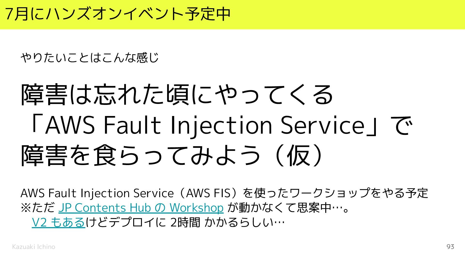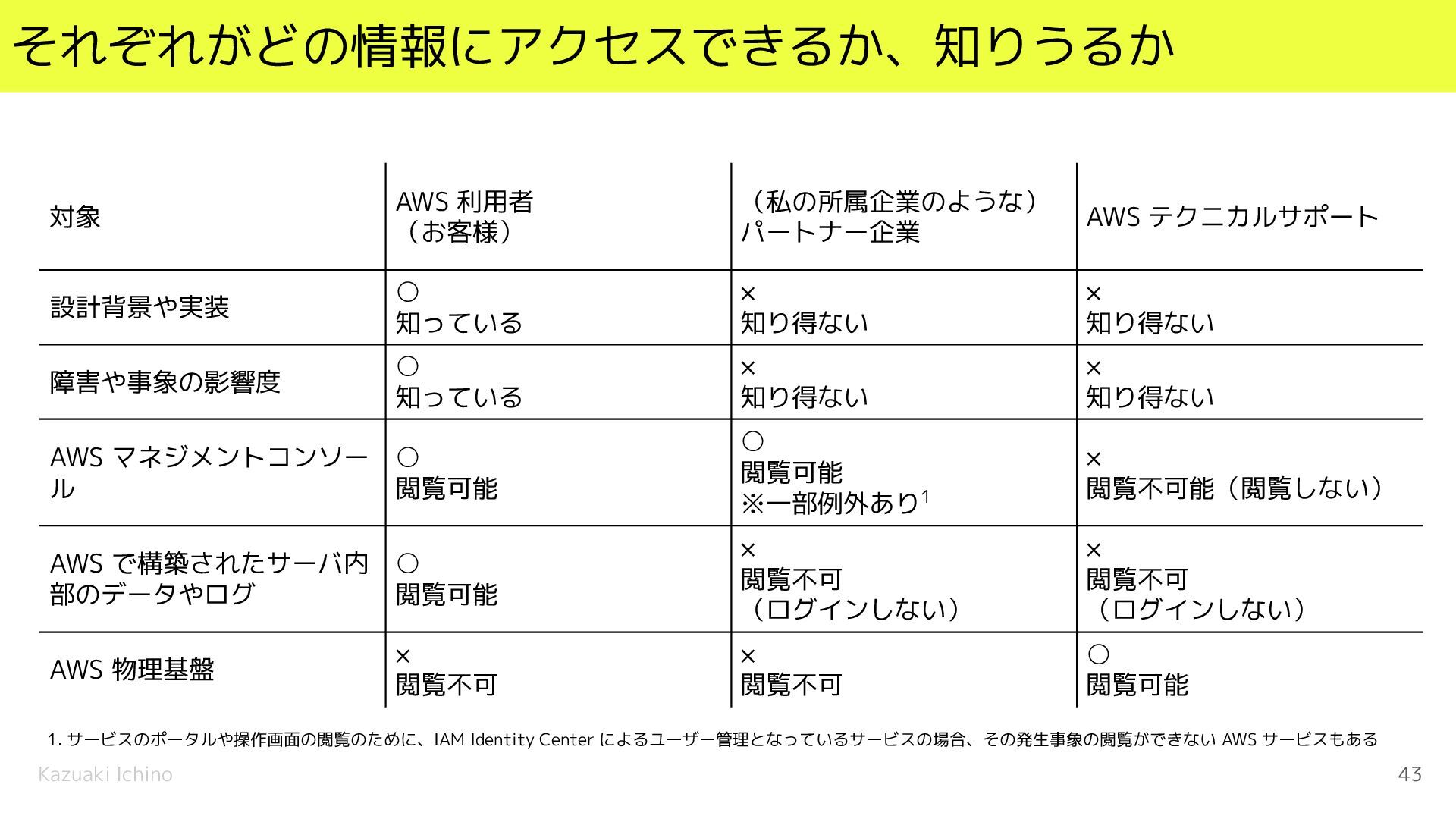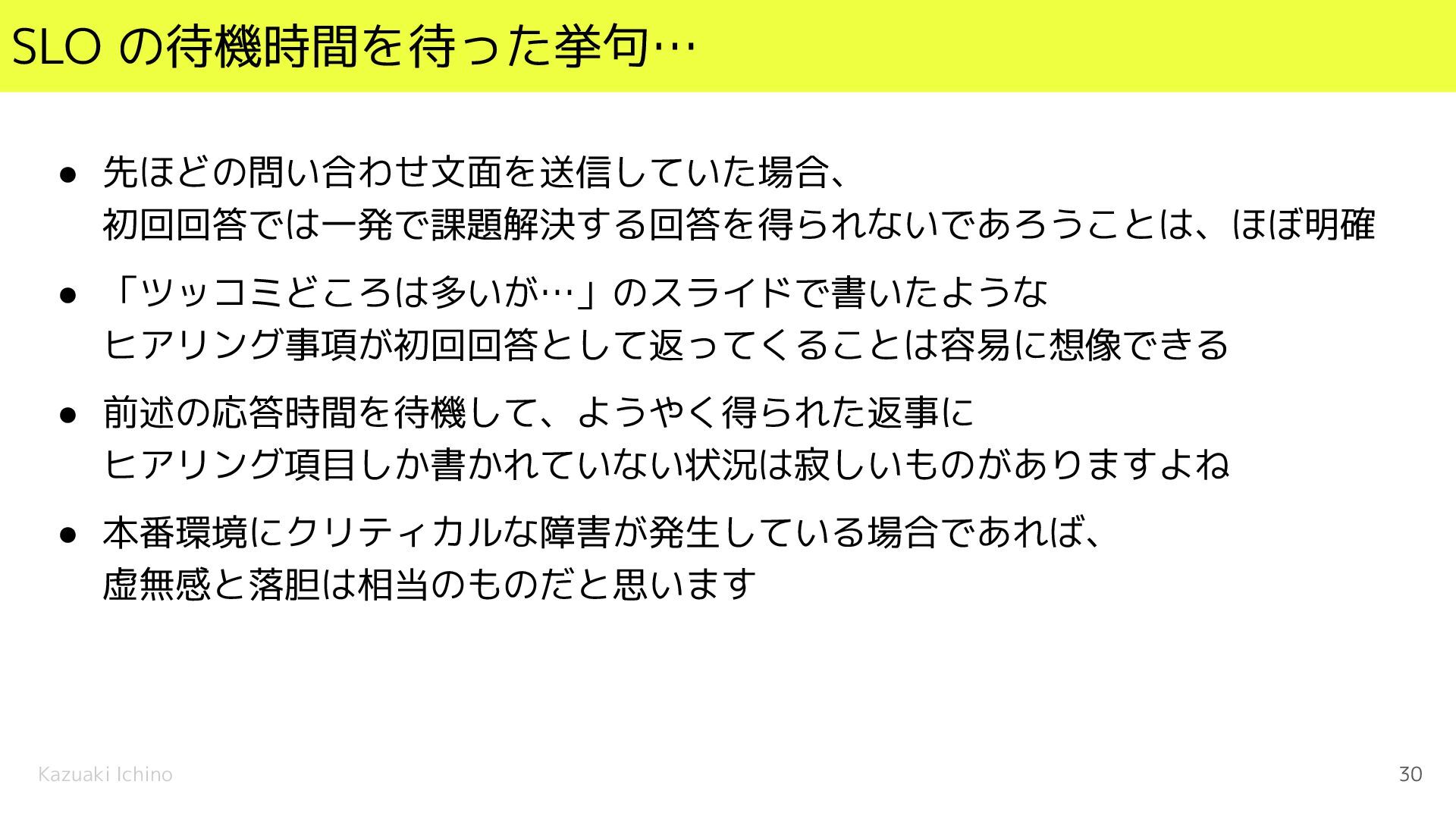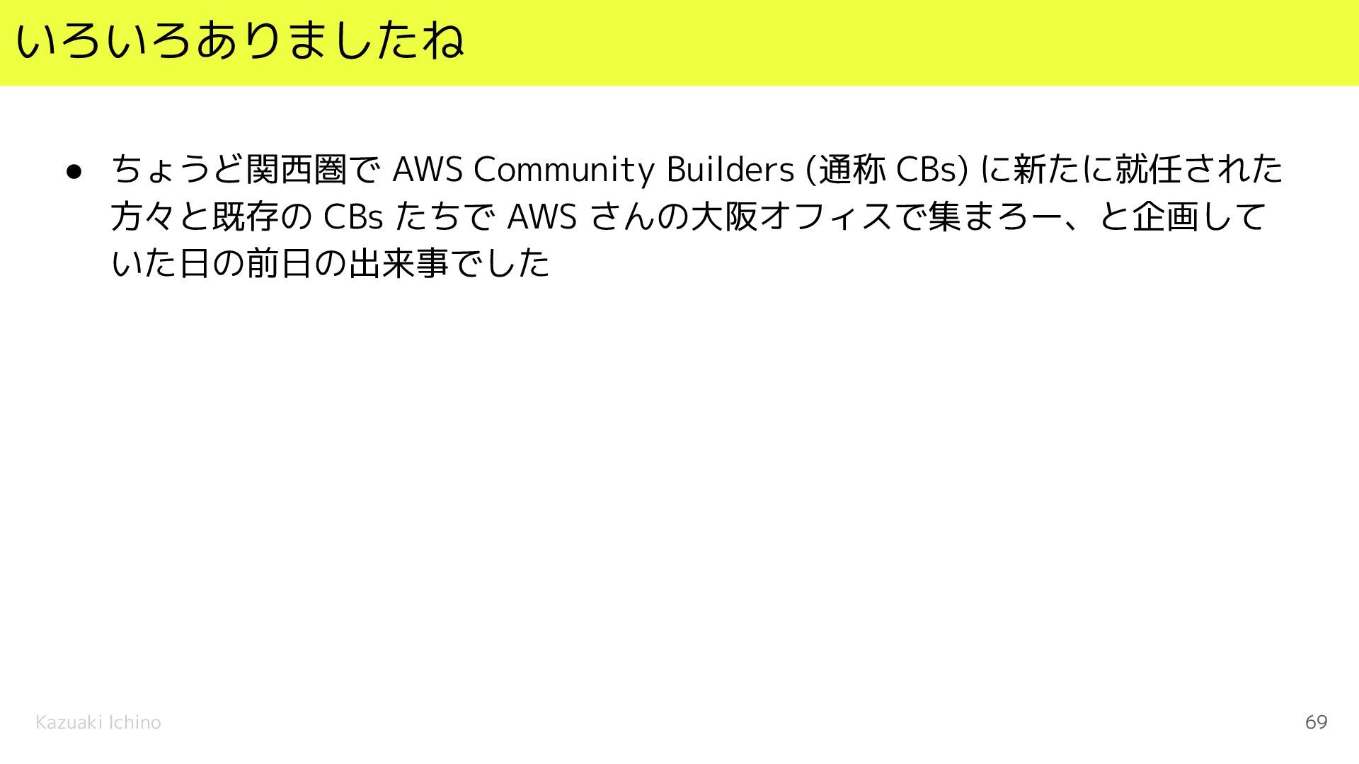 昨年の JAWSUG 北陸新幹線や JAWS FESTA 広島の時の私の話を聞いてくださったことのある方には耳タコかもなのですが、リセラーのテクニカルサポート部門でお客様と AWS テクニカルサポートの中間地点で業務をしていて思うことや、4月に発生した東京リージョンの AZ 障害の際のことをお話ししました。