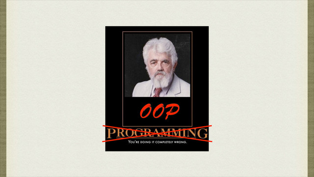 communicate with messages Goal: get rid of data Never seen a good type system Didn’t include inheritance at first “It can be done in Smalltalk and in LISP” (2003)