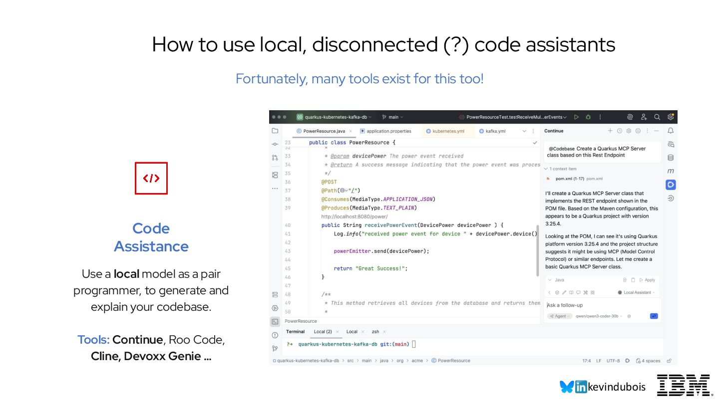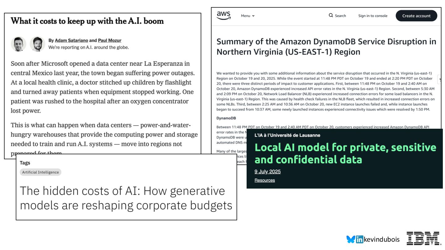 the Development Environment and adherence of the developers to their “local developer experience” in particular for testing and debugging Convenience & Simplicity Direct Access to Hardware Ease of Integration Simplify the integration of the model with existing systems and applications that are already running locally. For Organizations Data Privacy and Security Data is the fuel for AI, and a differentiator factor (quality, quantity, qualification). Keeping data on-premises ensures sensitive information doesn’t leave the local environment → crucial for privacy-sensitive applications Cost Control While there is an initial investment in hardware and setup, running locally can potentially reduce ongoing costs of cloud computing services and alleviate the vendor-locking played by Amazon, MSFT, Google Regulatory Compliance Some industries have strict regulations about where and how data is processed Customization & Control Easily train or fine-tune your own model, from the convenience of the developer’s local machine.