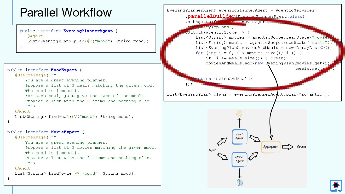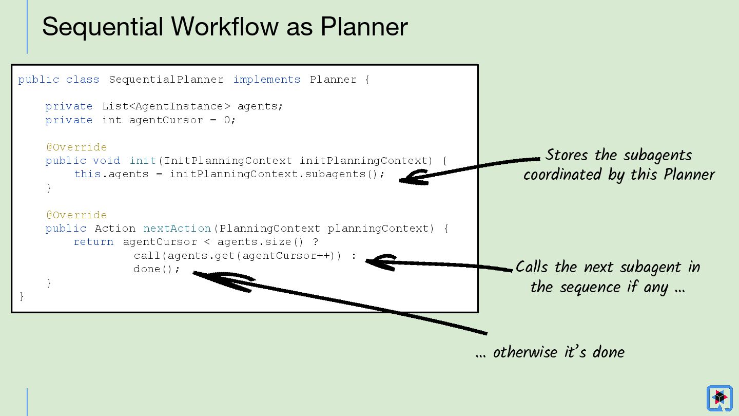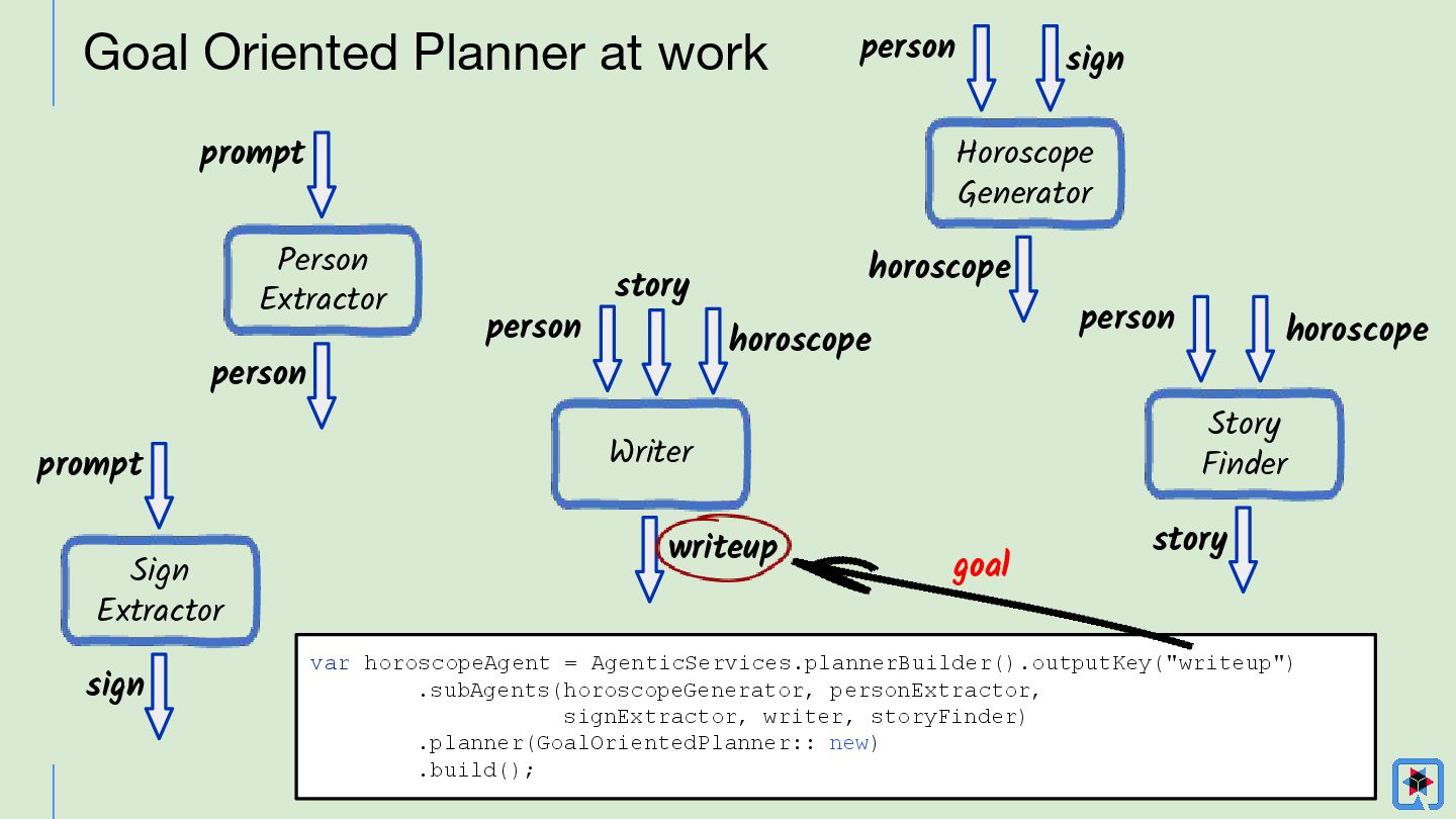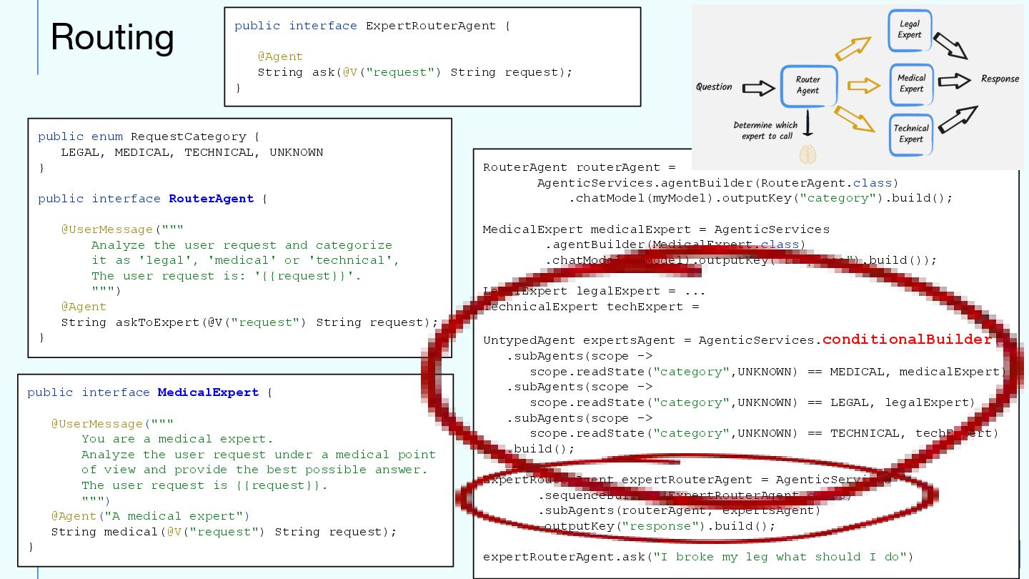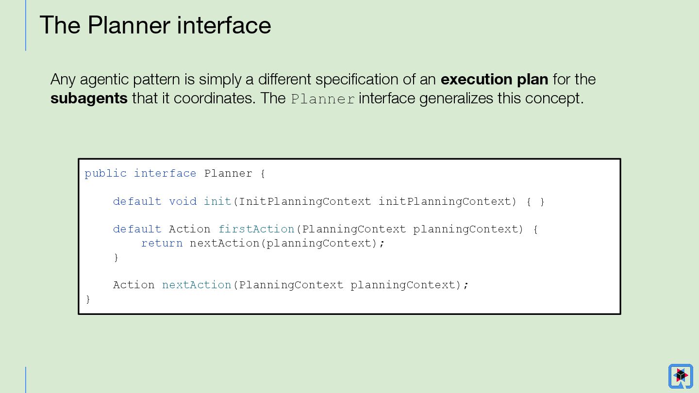@SystemMessage( """ … """) @UserMessage("The user request is: '{req}'. The last received response is: '{lastResponse}'.") AgentInvocation plan(@MemoryId Object userId, String agents, String req, String lastResponse, String ctx); } AgentInvocation{agentName='exchange', arguments={originalCurrency=EUR, amount=100, targetCurrency=USD}} AgentInvocation{agentName='credit', arguments={creditUser=Kevin, amountInUSD=115.0}} AgentInvocation{agentName='withdraw', arguments={withdrawUser=Mario, amountInUSD=115.0}} AgentInvocation{agentName='done', arguments={response=100 EUR has been transferred from Mario's account to Kevin's account. Kevin's account has been credited with 115.0 USD, and the new balance is 1115.0 USD. The withdrawal of 115.0 USD from Mario's account has been completed, and the new balance is 885.0 USD.}