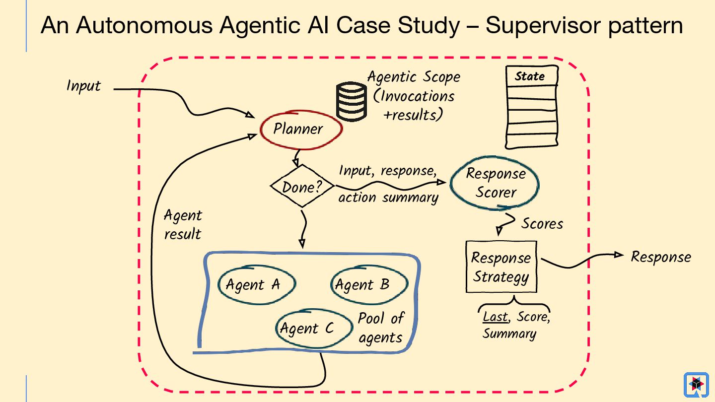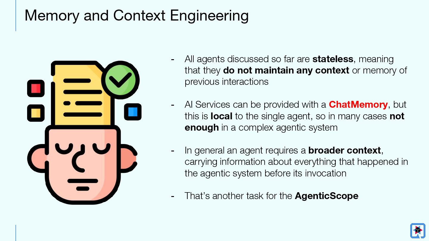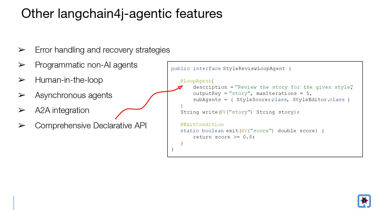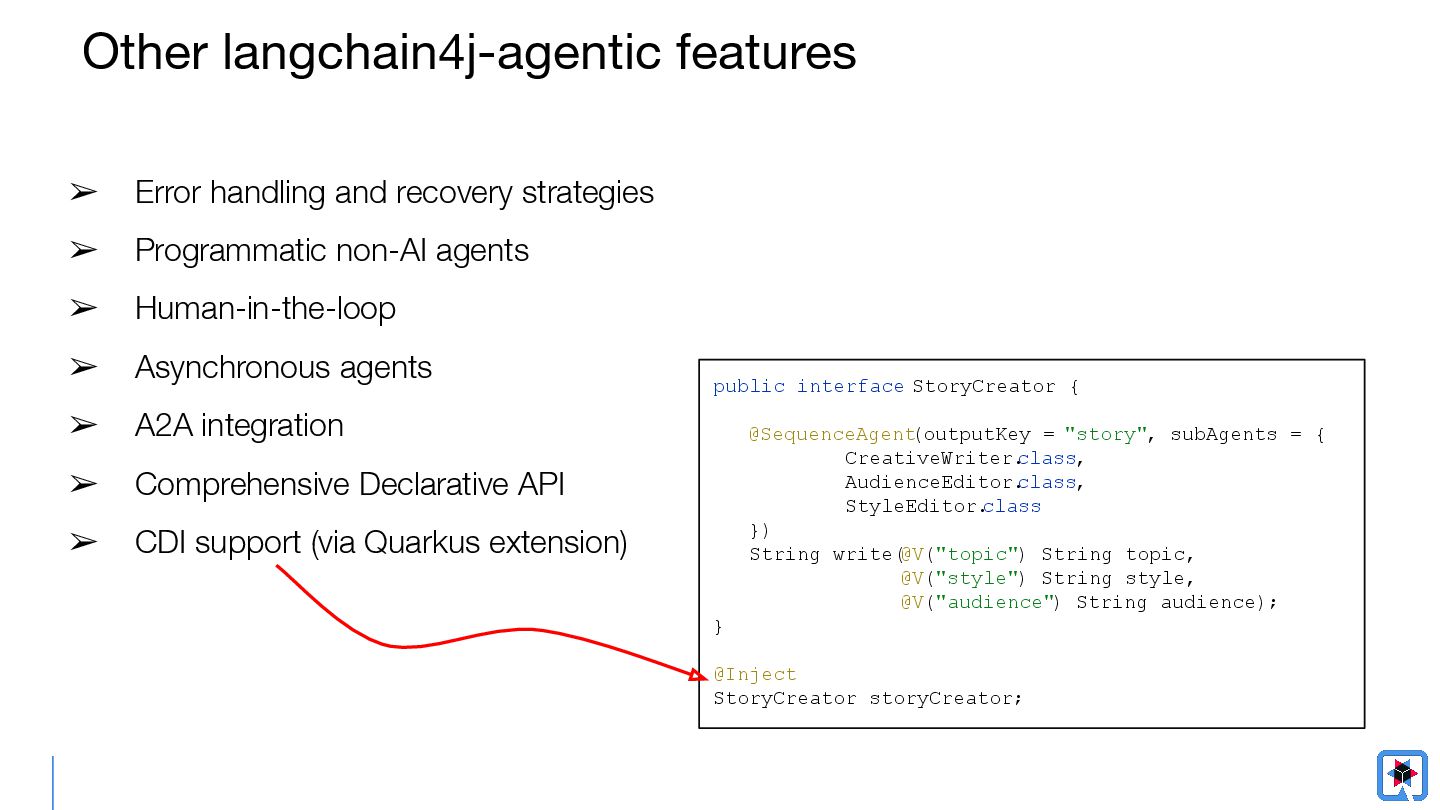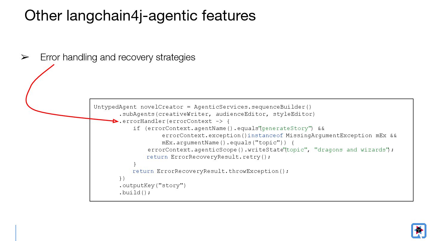 @SystemMessage( """ … """) @UserMessage("The user request is: '{req}'. The last received response is: '{lastResponse}'.") AgentInvocation plan(@MemoryId Object userId, String agents, String req, String lastResponse, String ctx); } AgentInvocation{agentName='exchange', arguments={originalCurrency=EUR, amount=100, targetCurrency=USD}} AgentInvocation{agentName='credit', arguments={creditUser=Kevin, amountInUSD=115.0}} AgentInvocation{agentName='withdraw', arguments={withdrawUser=Mario, amountInUSD=115.0}} AgentInvocation{agentName='done', arguments={response=100 EUR has been transferred from Mario's account to Kevin's account. Kevin's account has been credited with 115.0 USD, and the new balance is 1115.0 USD. The withdrawal of 115.0 USD from Mario's account has been completed, and the new balance is 885.0 USD.}